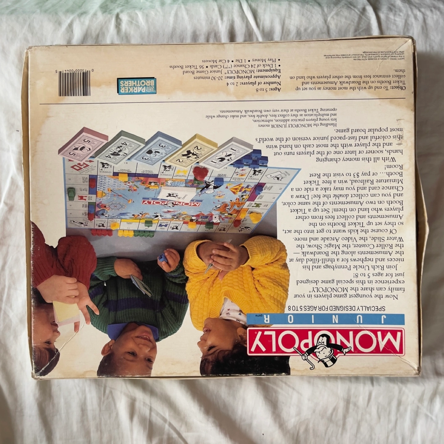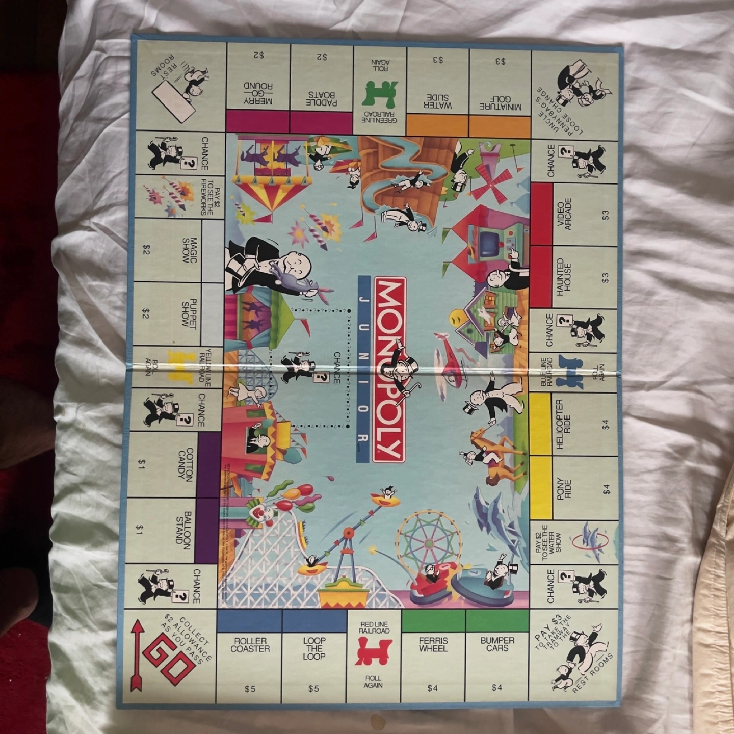 Collector’s calling!, Selling a Parker’s Brothers Monopoly Junior board game by Parker Brothers! It's specially designed for ages 5 to 8. The game includes the board, play money, 4 car movers, and chance cards.