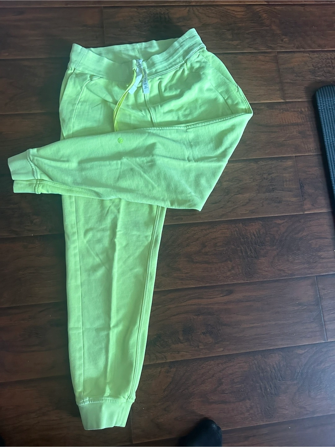 Selling a pair of Lululemon joggers in a lovely colour! They're a size 8 and made of comfy cotton. Perfect for lounging or running errands!
