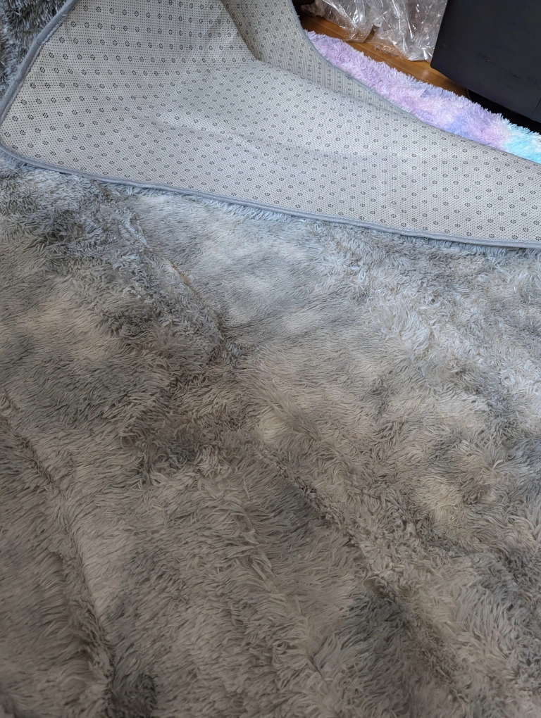 Looking to add some cozy vibes to your place? I'm selling a GERBIT shag area rug! It's super soft and plush, perfect for a bedroom, living room, or dorm. Its brand new. - Size: 8x10 feet - Colour: Tie-dyed light grey - Originally bought for $119.99