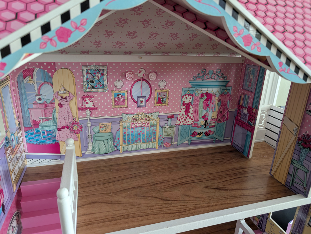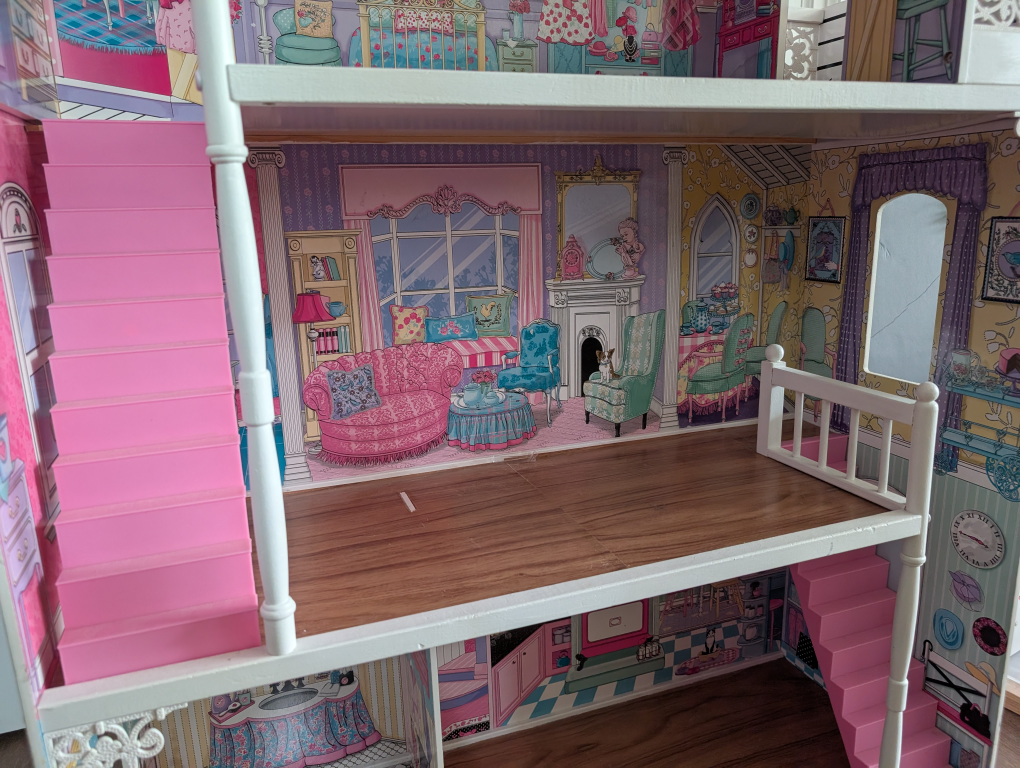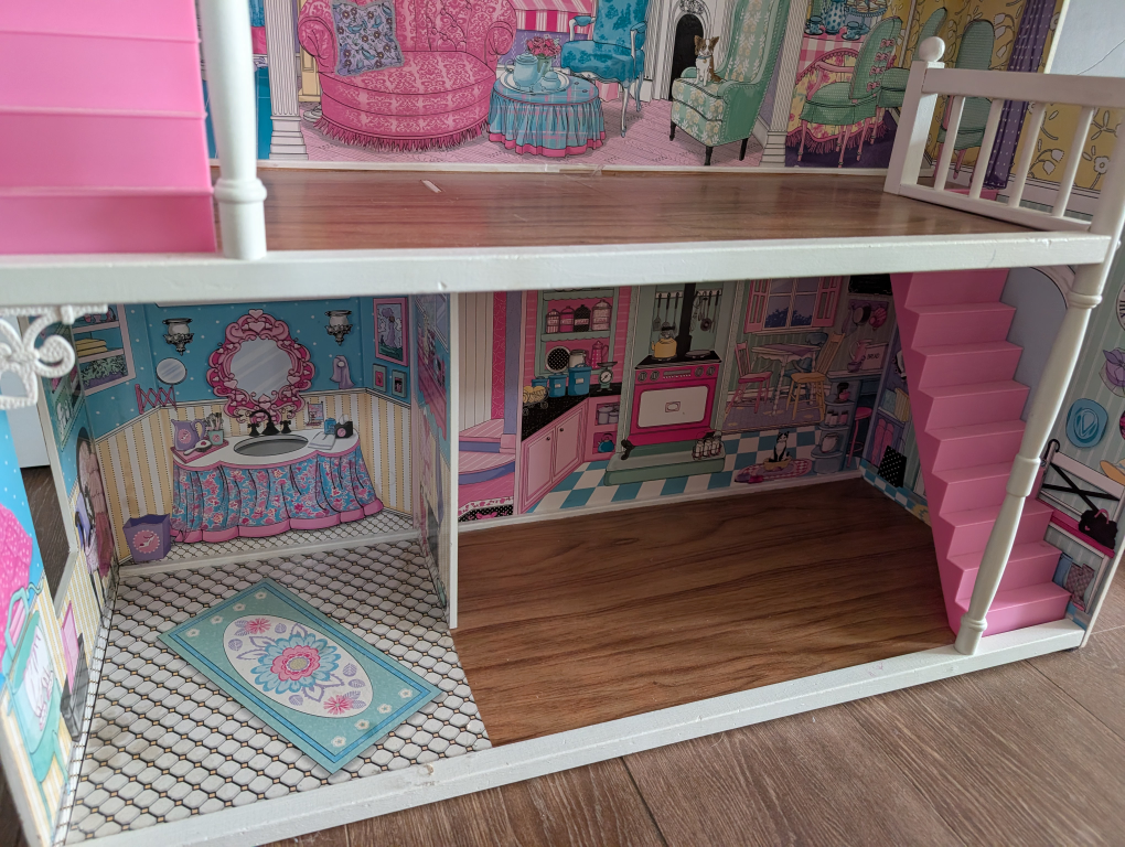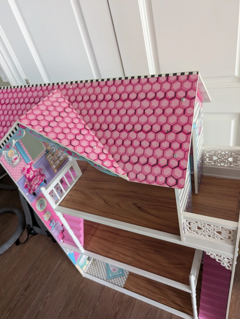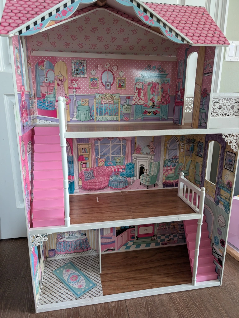 A cute dollhouse with three stories! It's in great condition and ready for a new home. Perfect for imaginative play!