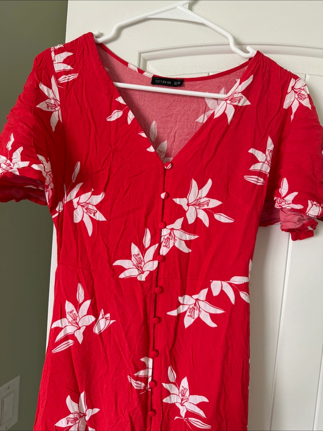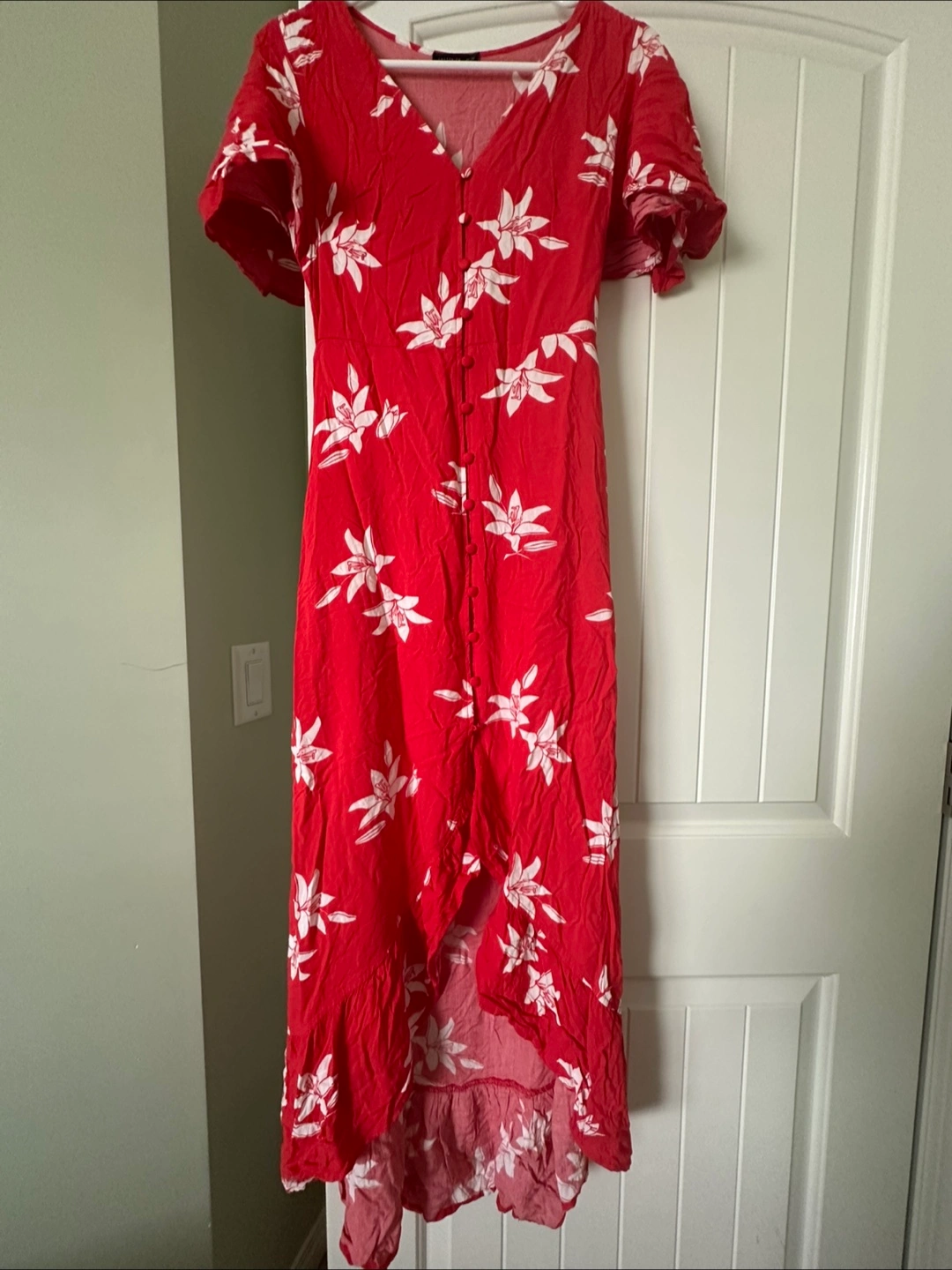 Selling a cute Cotton On maxi dress in size XS. It's a vibrant red with a lovely white floral print. Perfect for summer days! Worn 2x. Pick up only at McConachie