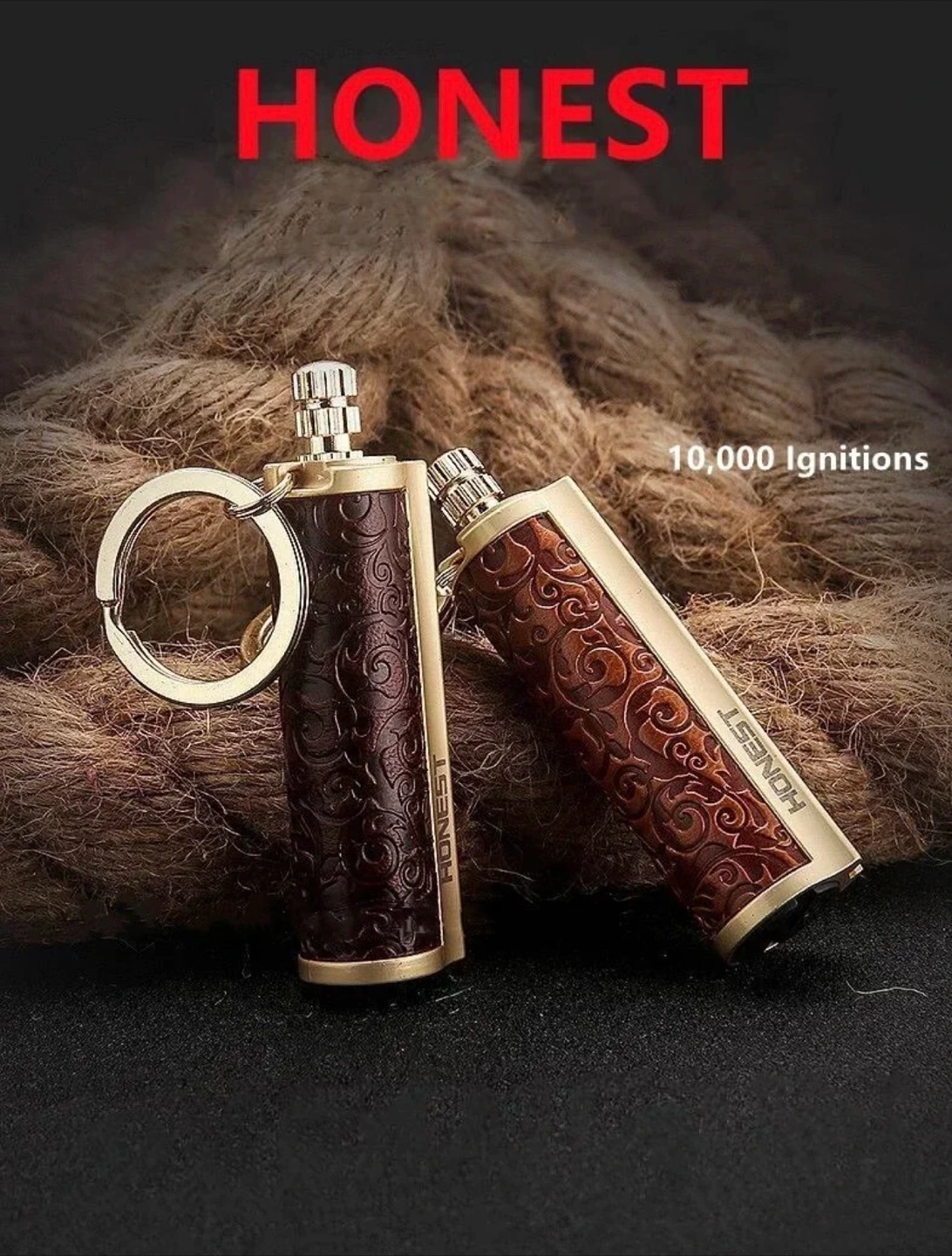 248Check out this handy HONEST permanent match fire starter! It's perfect for camping, hiking, or just keeping in your car for emergencies. It's designed for 10,000 ignitions and features a stylish brown leather pattern.