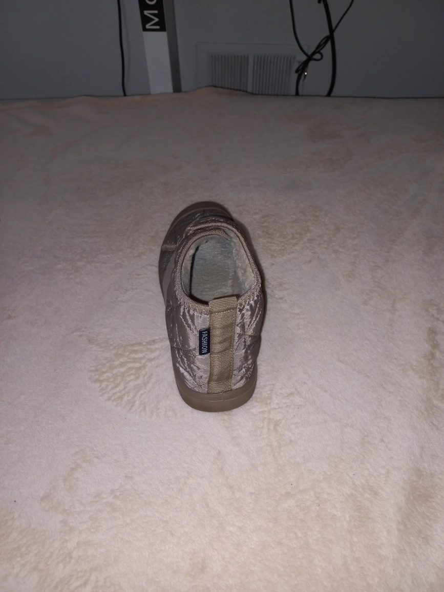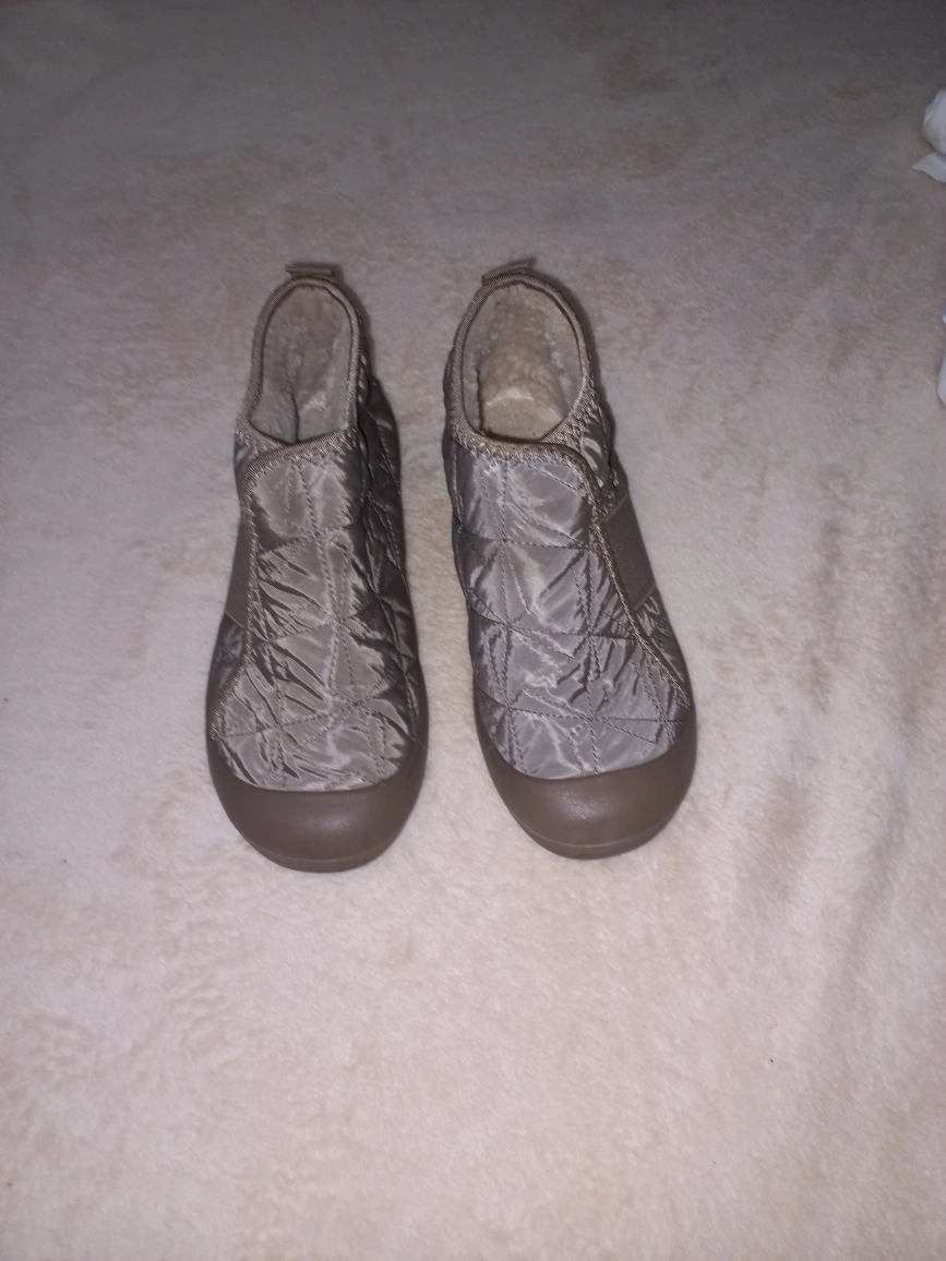 Cozy Baffin Cush booties, perfect for keeping your feet warm around the house! These are a size 8 and feature a quilted design.
