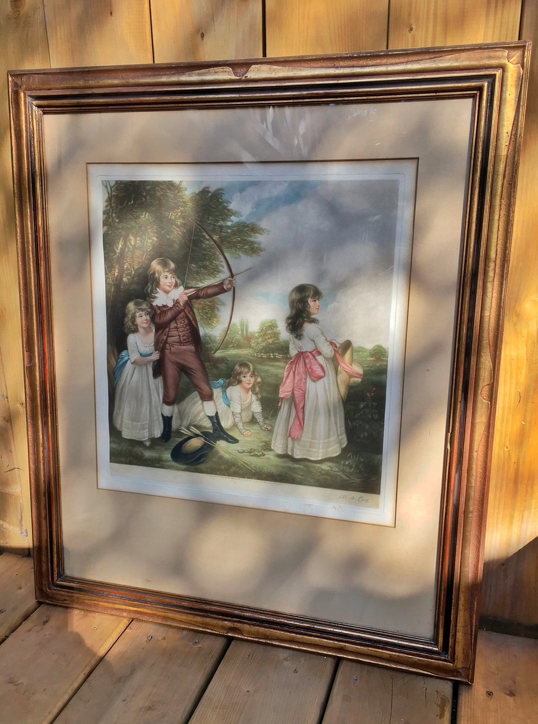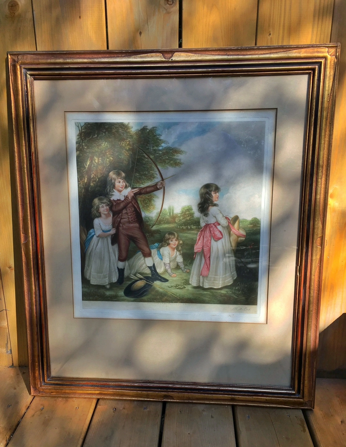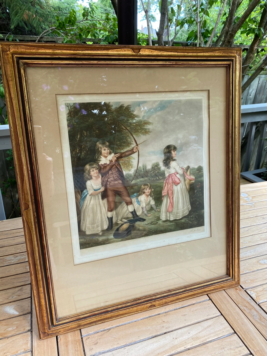 ⭐️This is from the original oil painting,The Oddie Children, 1789 by William Beechey “Children at Play” after Sir William Beechey,Mezzotint By W.A.Cox.