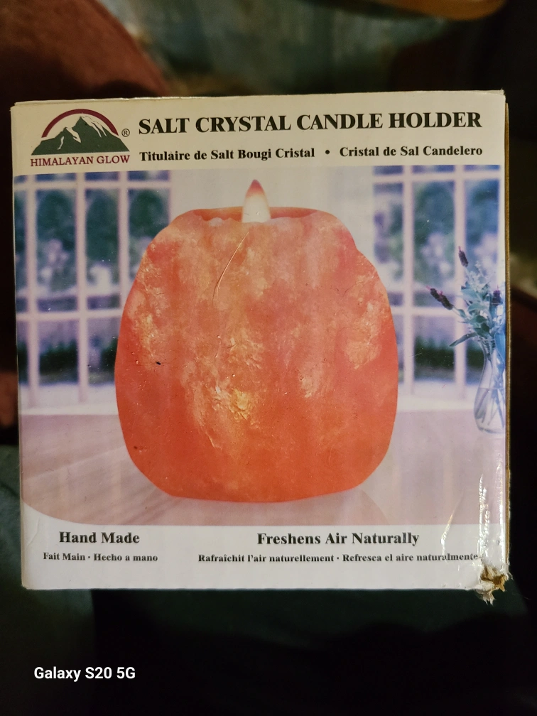 This is a Himalayan Glow Salt Crystal Candle Holder. It's hand made and freshens air naturally. Each crystal is unique, mined and chipped by hand in the Himalayan Mountains. Keep away from water and direct sunlight, and handle with care