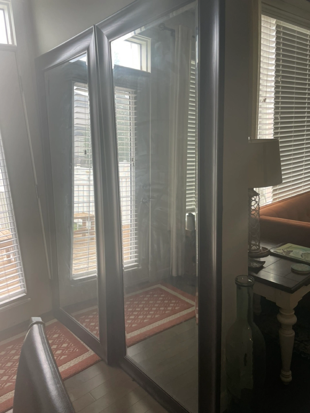 Selling 2 large mirrors with a dark brown frame. Great condition, perfect for adding a touch of elegance to any room! Hand or lay against the wall. Perfect to go on both sides of fireplace. $75 each and 2 for $130