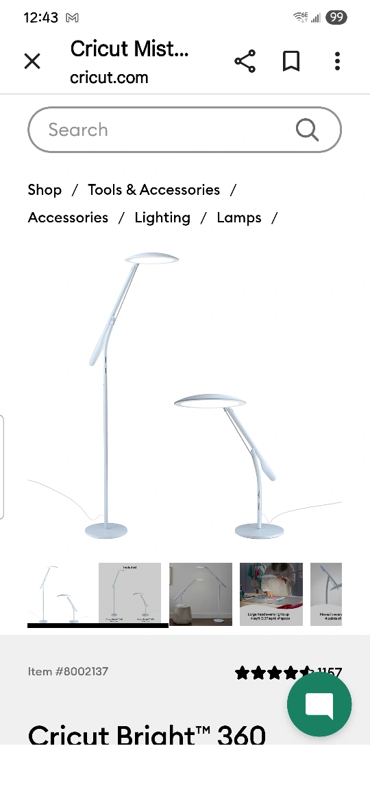 Selling a Cricut Bright 360 floor lamp. It provides a large head that evenly lights up 4 sq ft (0.37 sq m) of space. Great for crafting or reading!