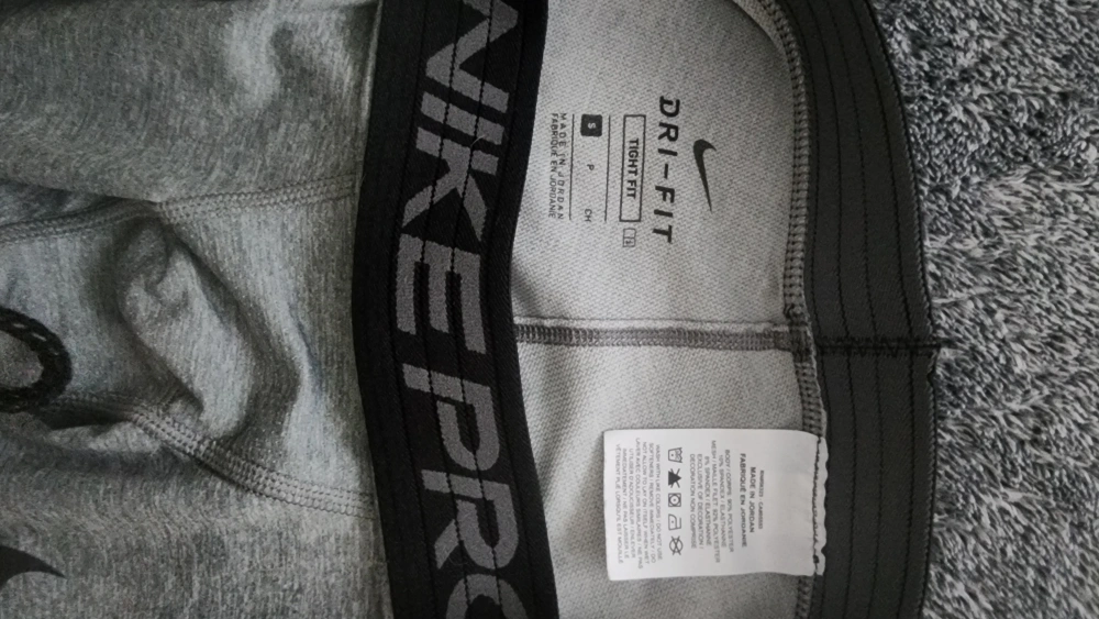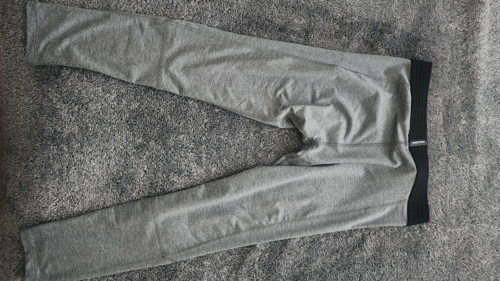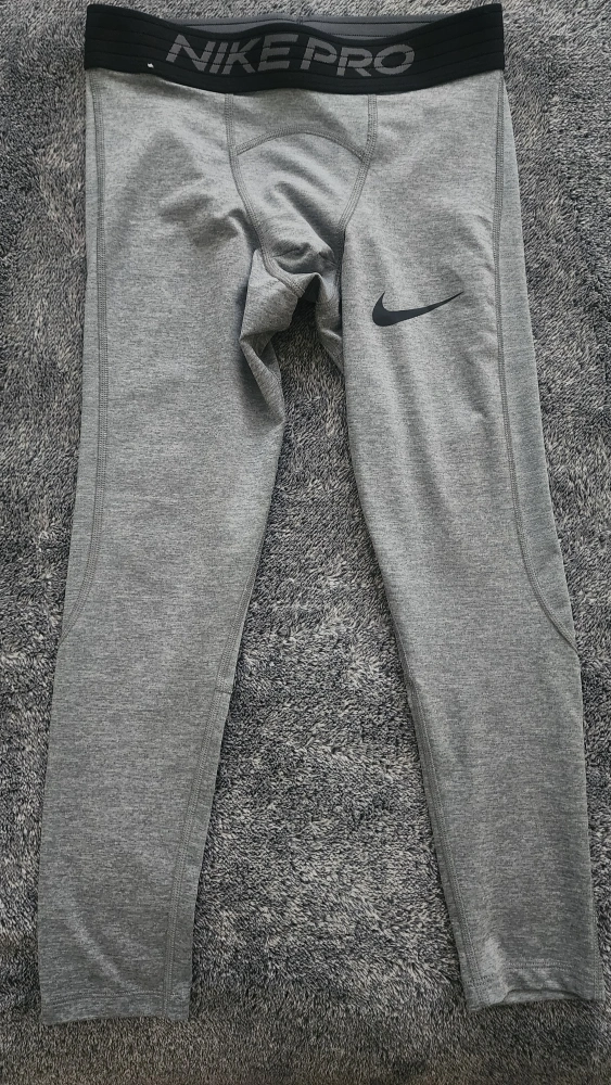 Selling a Nike Pro Dri-FIT tight fit leggings in grey. They are a size small and in excellent condition. Used once on basketball tournament of my 12 years old son.
