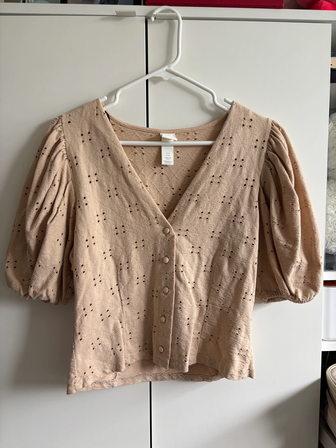88Cute H&M top with puff sleeves in a neutral beige colour! It's a size M and in great condition. Perfect for a casual or dressed-up look