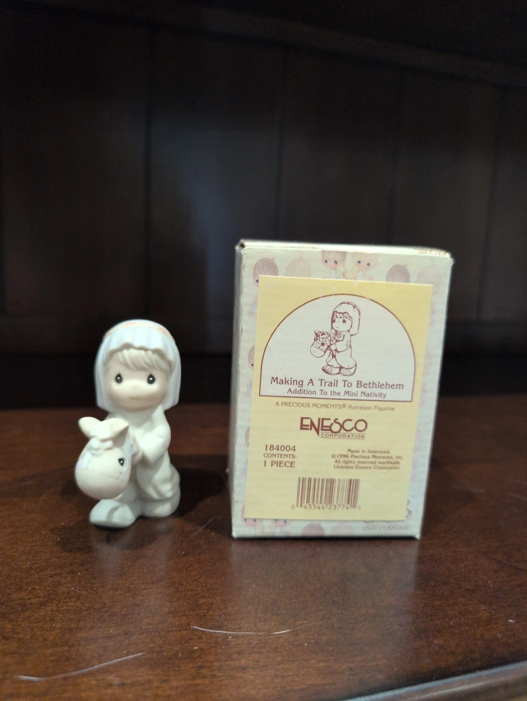 I'm selling a Precious Moments figurine titled "Making a Trail to Bethlehem". It's part of the Addition to the Mini Nativity series. The box is included!