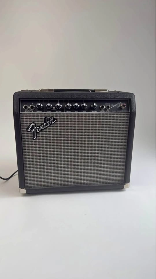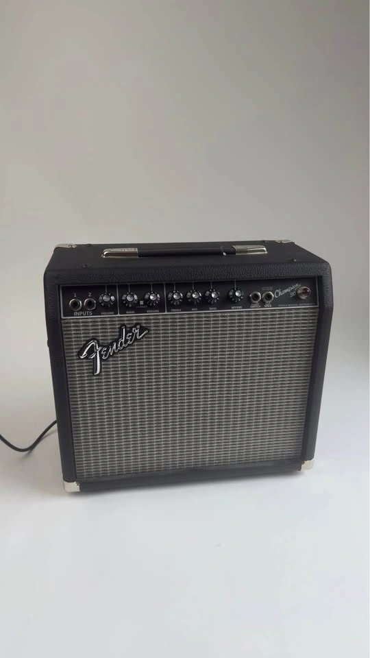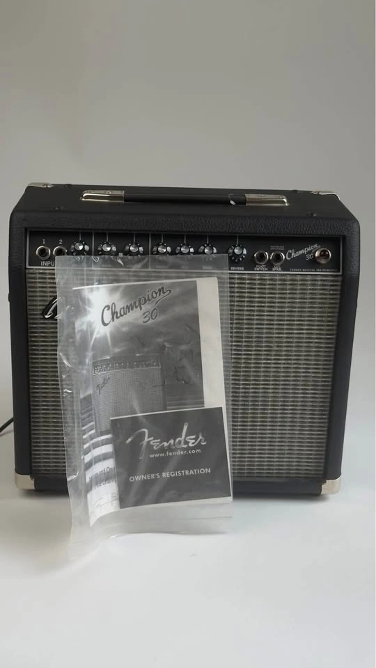 643This is a used Fender Champion 30 guitar amplifier, perfect for practice or small gigs. It delivers a range of tones, from clean to distorted, making it versatile for various music genres. It's in good condition and ready to plug in and play. * 30 Watts * 10-inch speaker * Two channels: Clean and Drive * Built-in effects: Reverb, Chorus, Flanger, Delay, Tremolo * 3-Band EQ