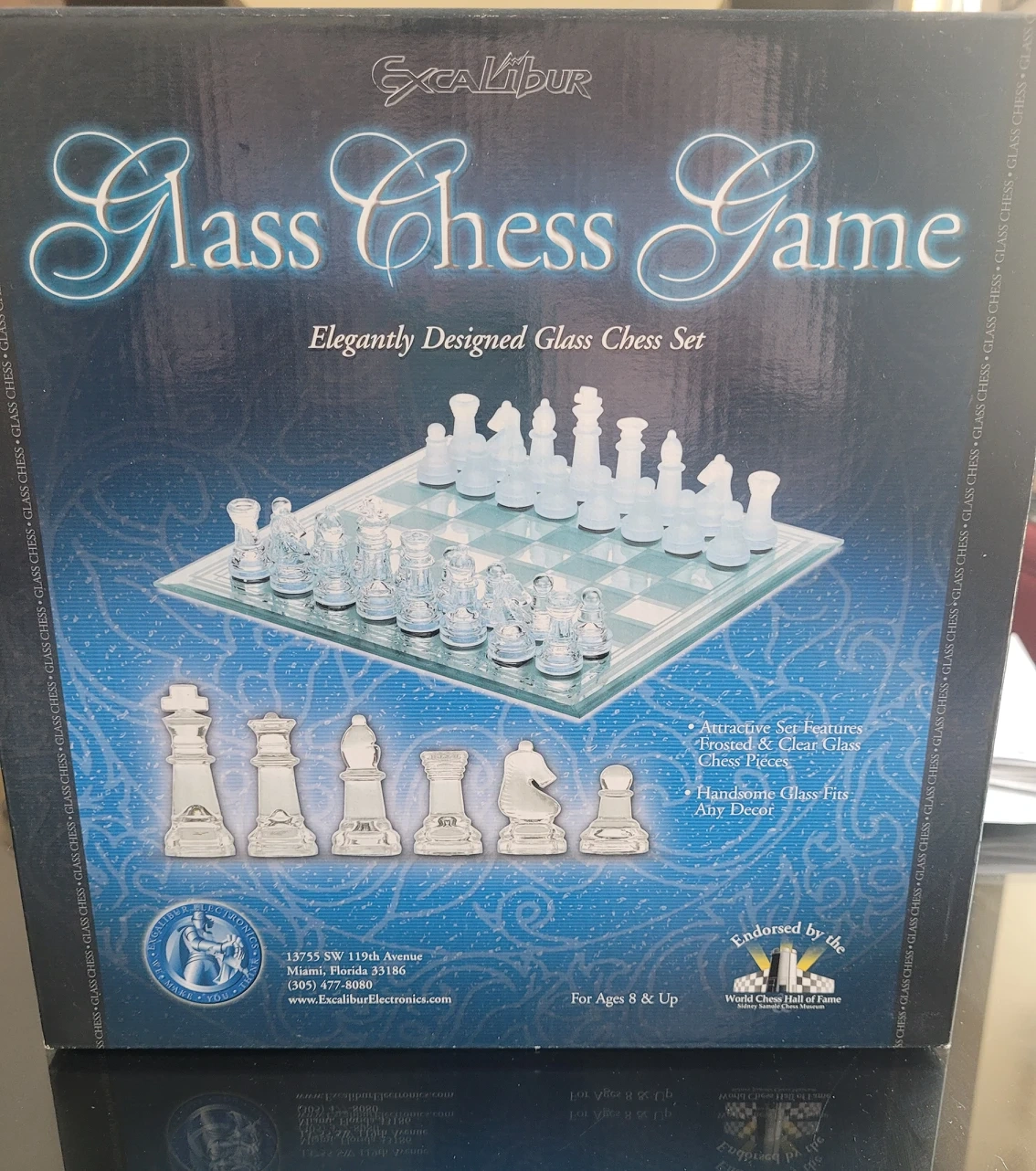 Excalibur Glass Chess Game - Frosted & Clear Glass Chess Pieces