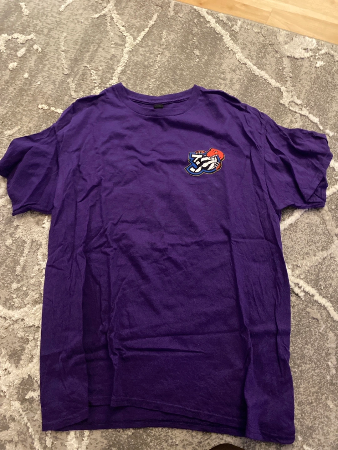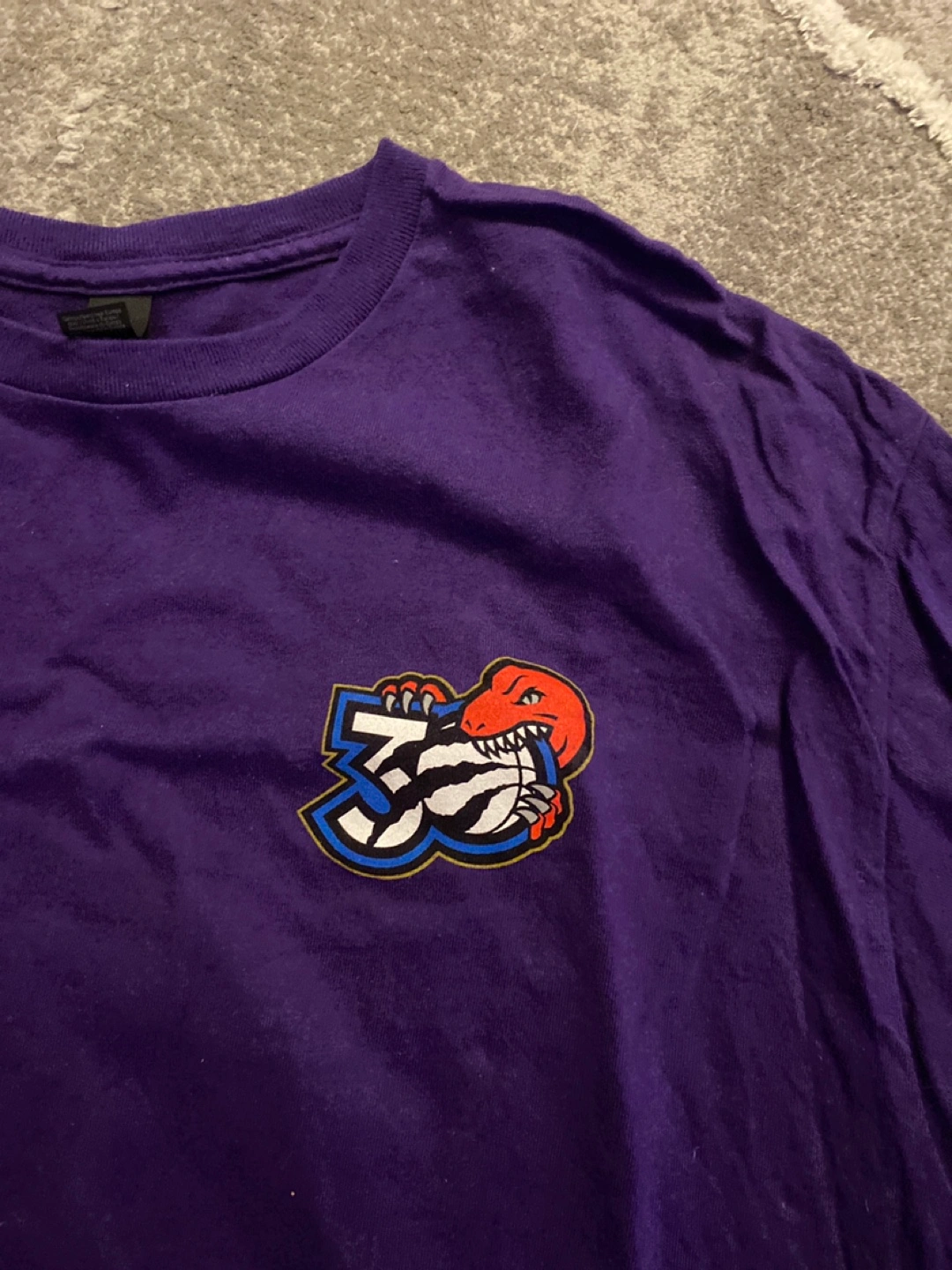 Selling a Toronto Raptors tee in a vibrant purple! The shirt commemorates the team's North Side roots since '95. It features the Raptors logo on the front and a cool design on the back. Perfect for any Raptors fan!