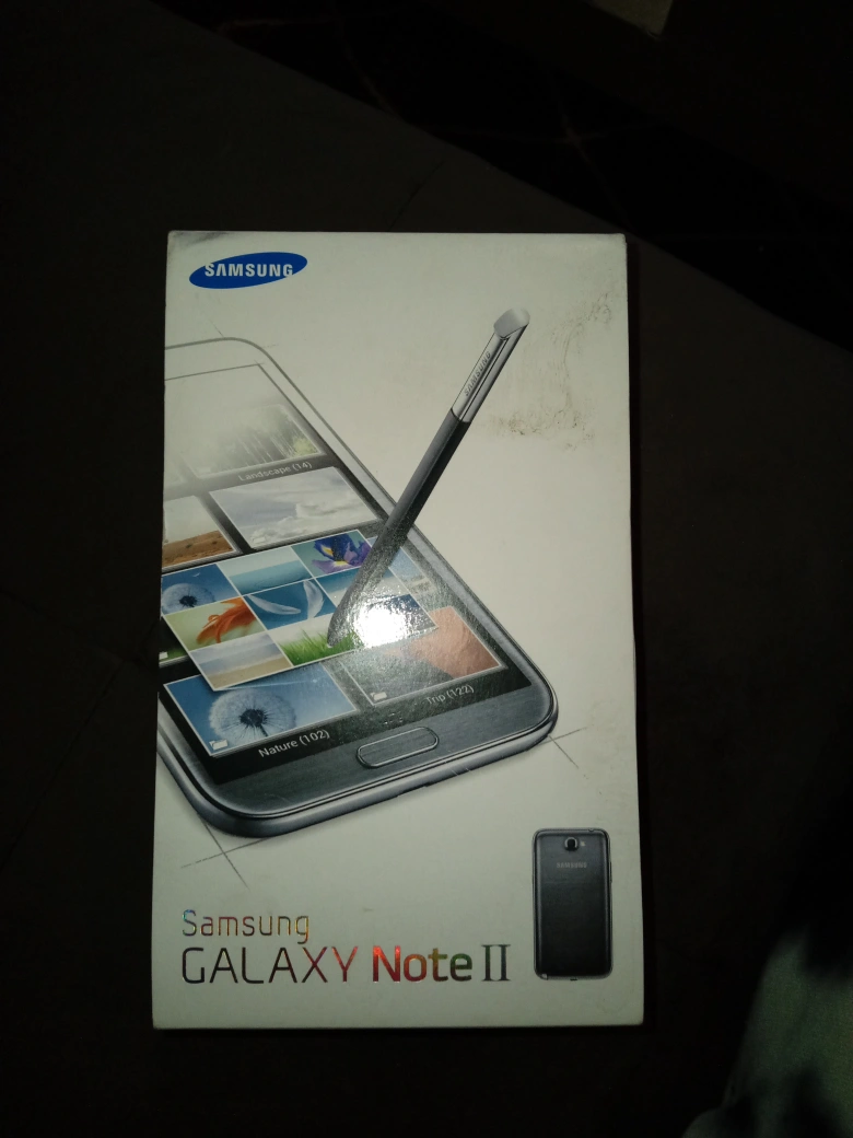 Selling a Samsung Galaxy Note II with 16GB of storage. It comes with its original box and stylus. The phone is in good condition and ready for a new owner! Does not turn on