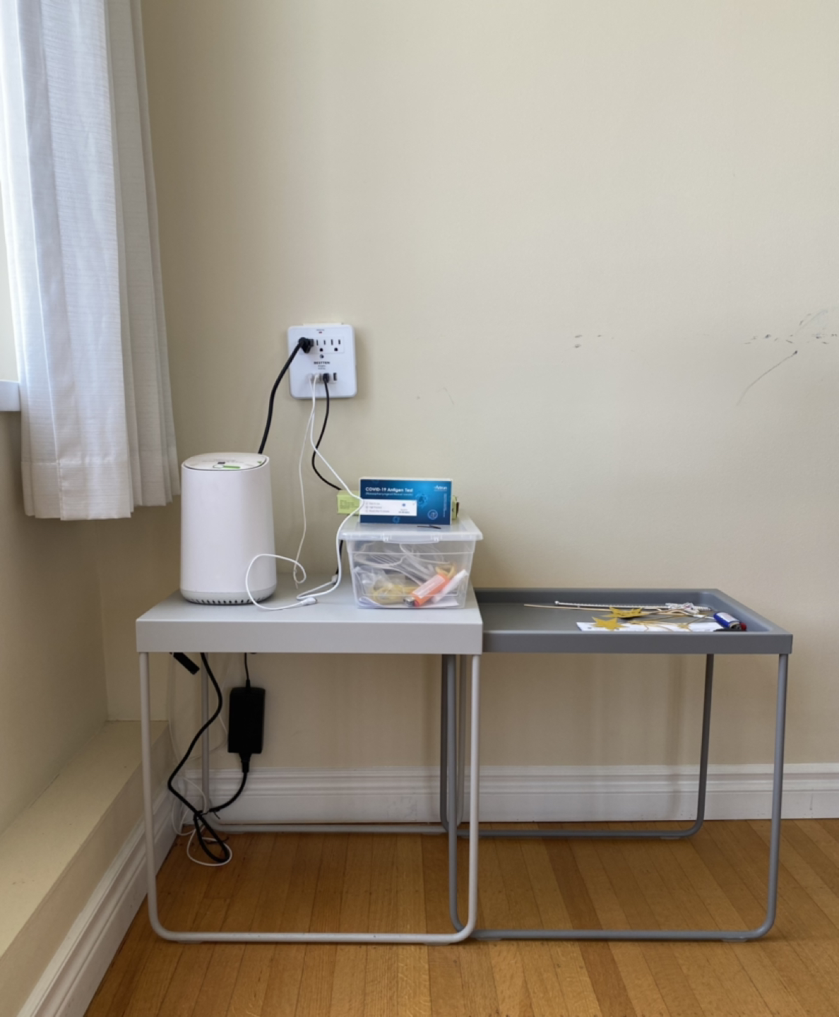 Frosted iron surface, easy to clean, like new. Can be used separately or combined, one of them has a small drawer. White one is bigger, 48cm*40cm*50cm the grey one is smaller, 48cm*36.5cm*48cm. It is so useful.