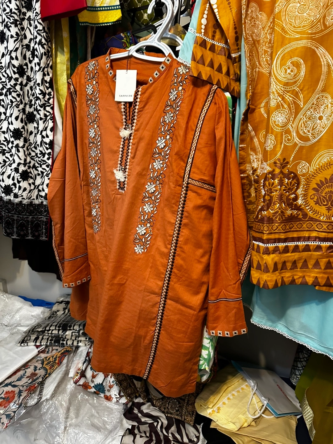 Selling a beautiful orange kurti from Sapphire! It features lovely embroidery and is in great condition. Perfect for adding a pop of colour to your wardrobe!