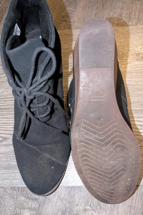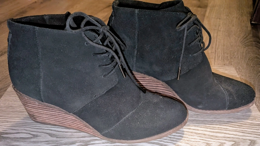 Buy & Sell👢TOMS Black Suede Wedge Ankle Boots - Size 9👢👢TOMS Black Suede Wedge Ankle Boots - Size 9👢$40Selling a pair of TOMS wedge ankle boots in black suede. They're in great shape and super comfy! Size 9 US. Retail $70+. Asking $40 OBO.ConditionLike newSize9WHERE TO MEETBright Path Daycare Bowness at 3711 73rd Street NWView MapSELLERverifiedJaeBowness24817 reviews0 chats·0 favorites·7 views