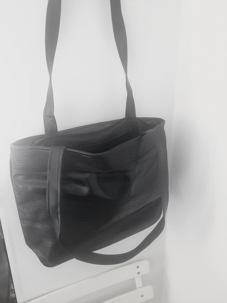 71Selling a black tote bag. It's in great condition and perfect for carrying your everyday essentials. The material looks like leather