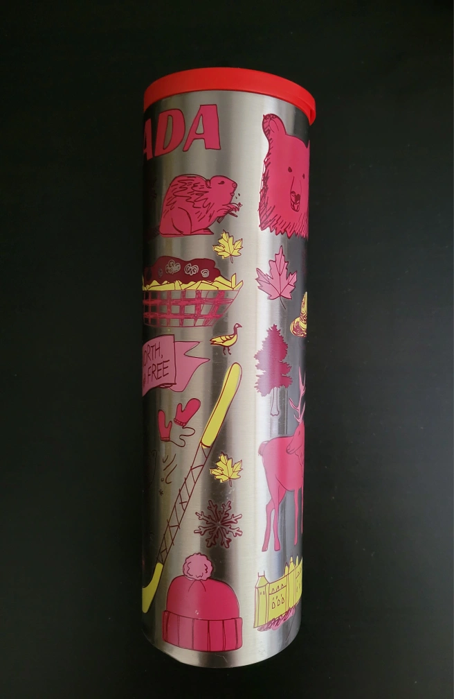 217Selling a Starbucks Canada themed stainless steel tumbler! It holds 16 oz / 473 mL and features fun Canadian icons. The original price was $31.95 CAN