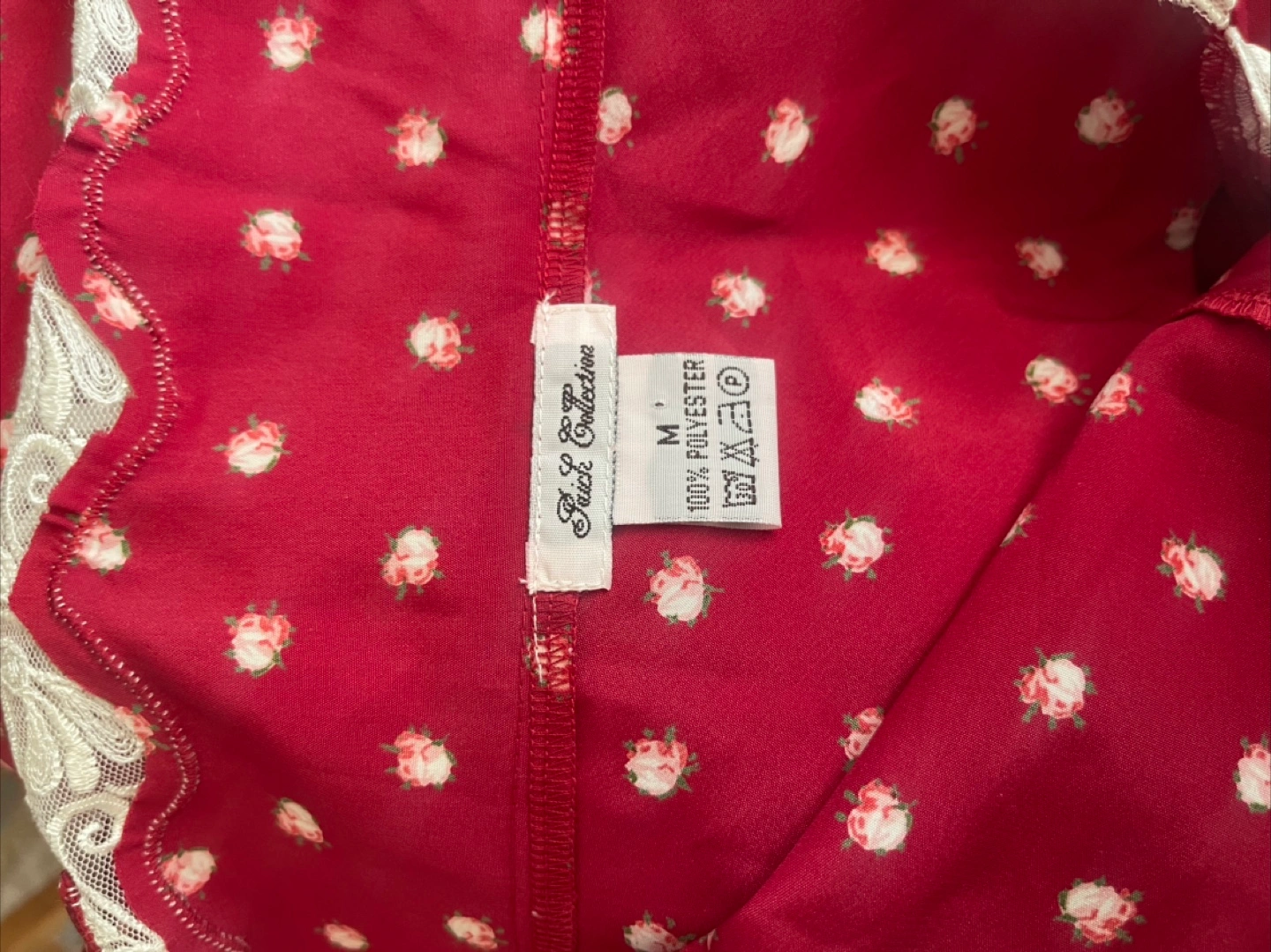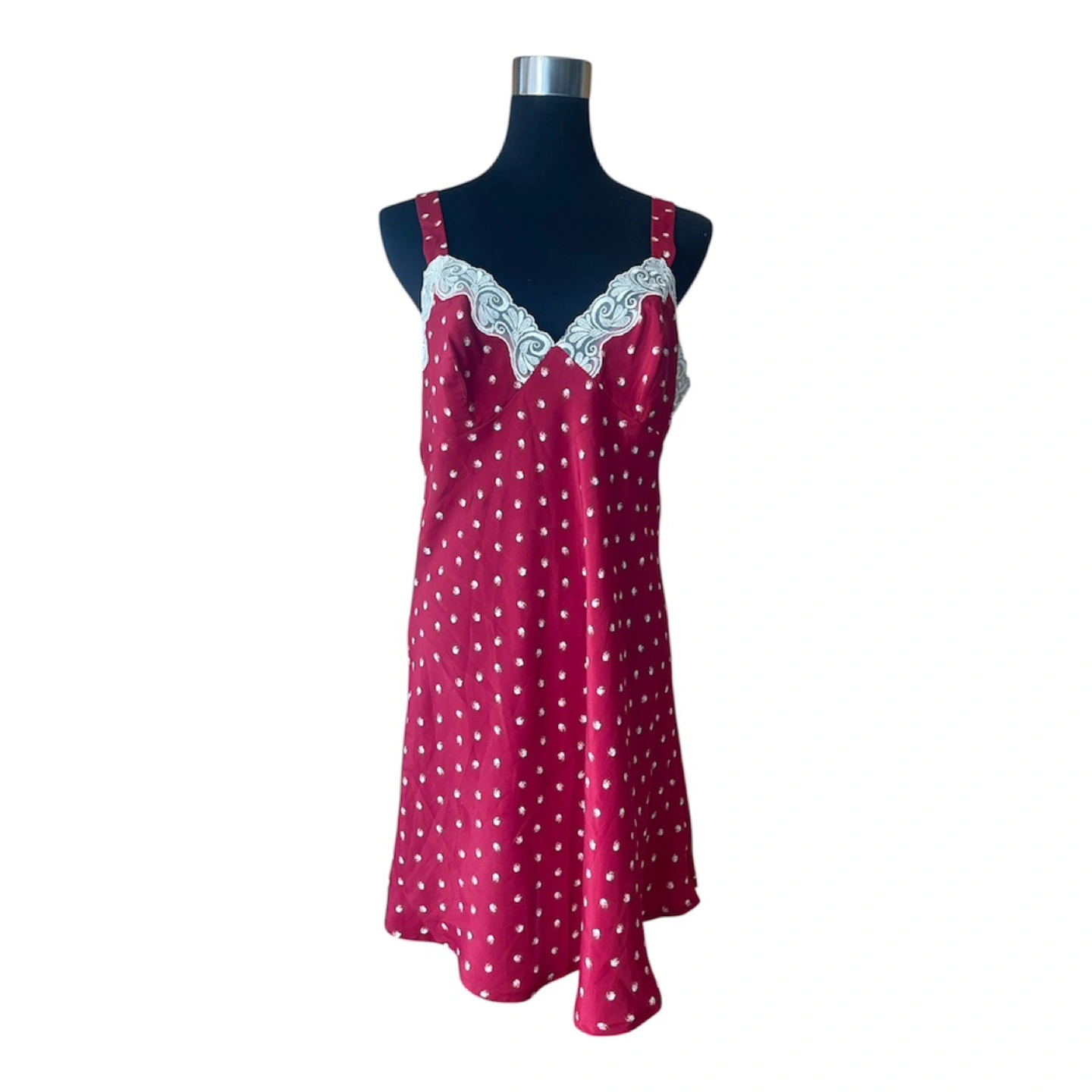 Vintage 90s Red & White Floral Pattern Lace Trim Mini Slip Dress Thick Straps S/M