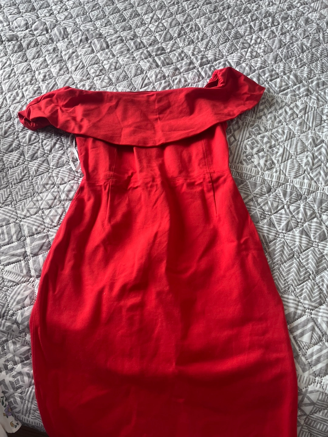 Selling a beautiful red off-the-shoulder dress from Babaton! It's a size 8 and in great condition. Perfect for a night out or a special occasion. The dress has a flattering silhouette and a stylish design.