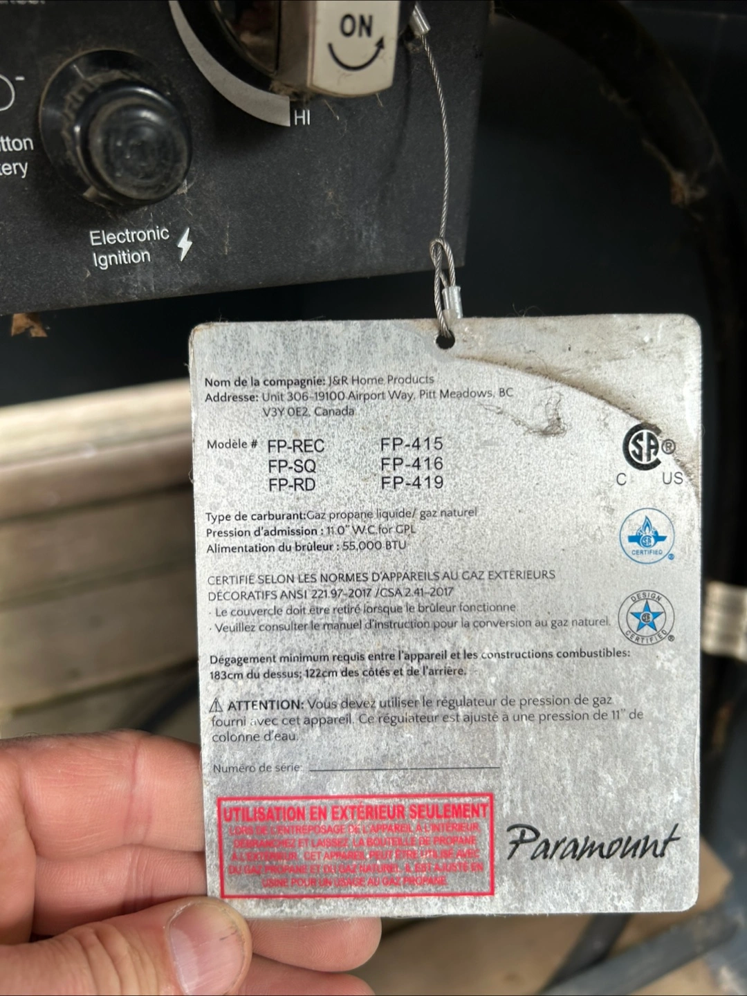 * Fuel Type: Propane/Natural gas