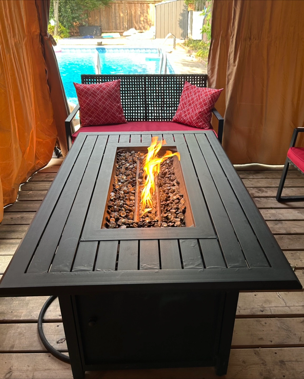 This fire table is in perfect working condition and provides a cozy gathering spot for friends and family. Gas hose (approx 20’) included.