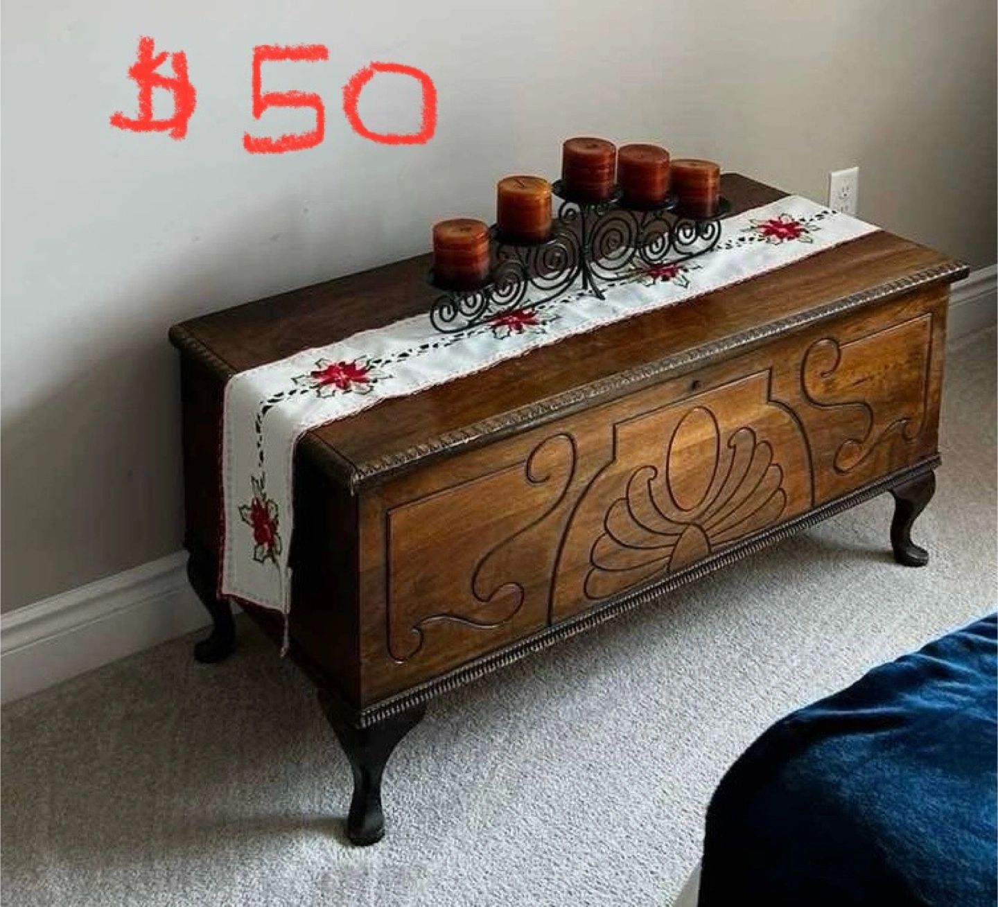Buy & SellWooden Cedar ChestWooden Cedar Chest$50Selling a beautiful wooden cedar chest. It would be a great addition to any room for storage or as a decorative piece.ConditionLike newWHERE TO MEETCheck LocationView MapSELLERverifiedKerryCrestview650 reviews0 chats·0 favorites·23 views
