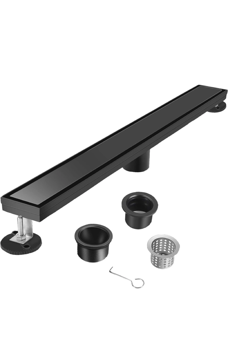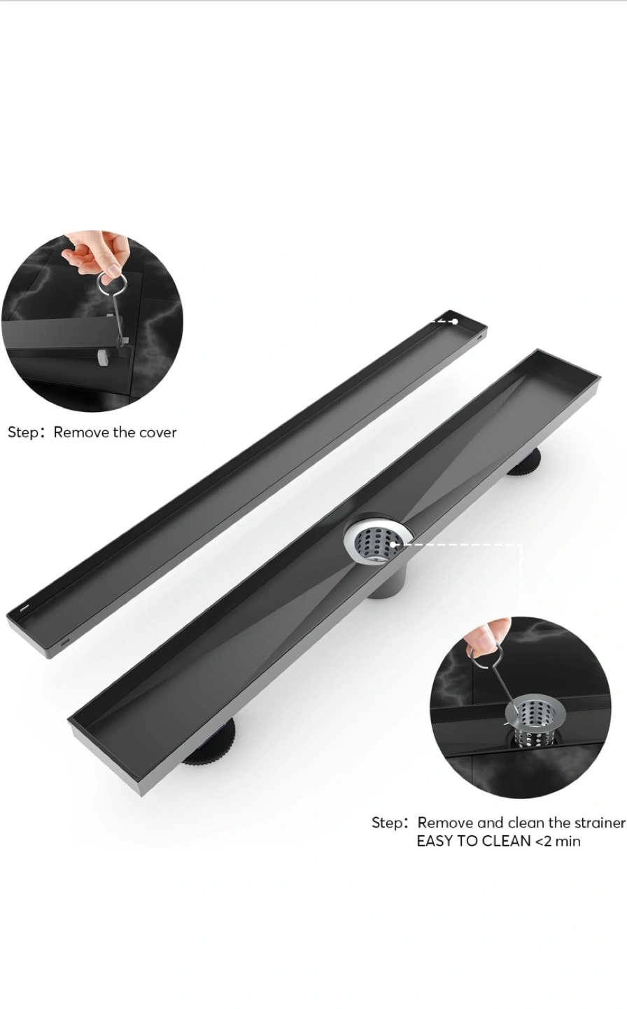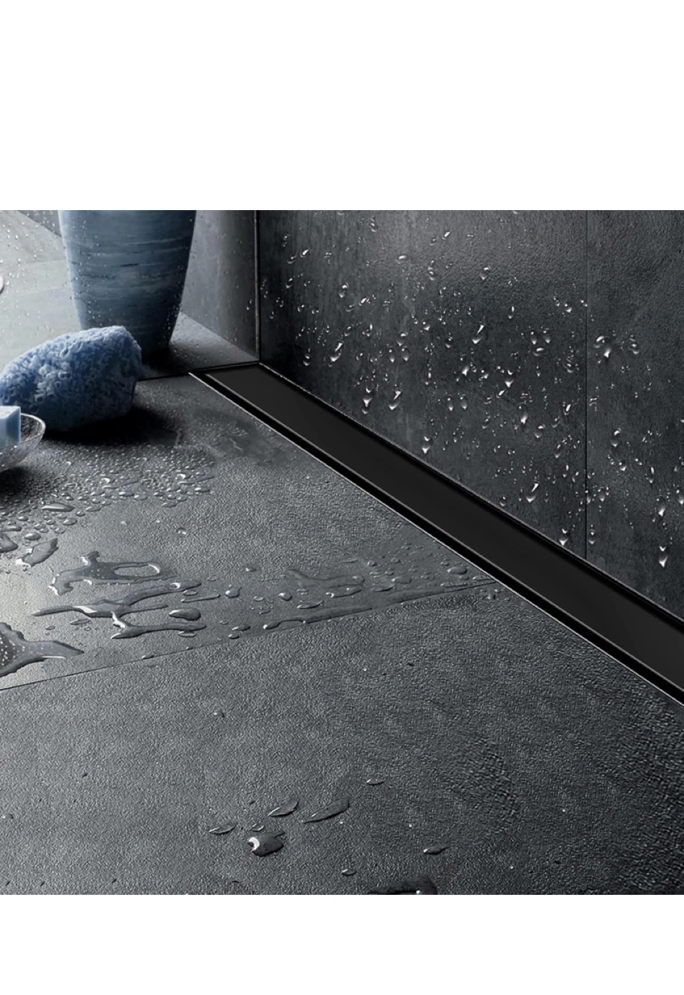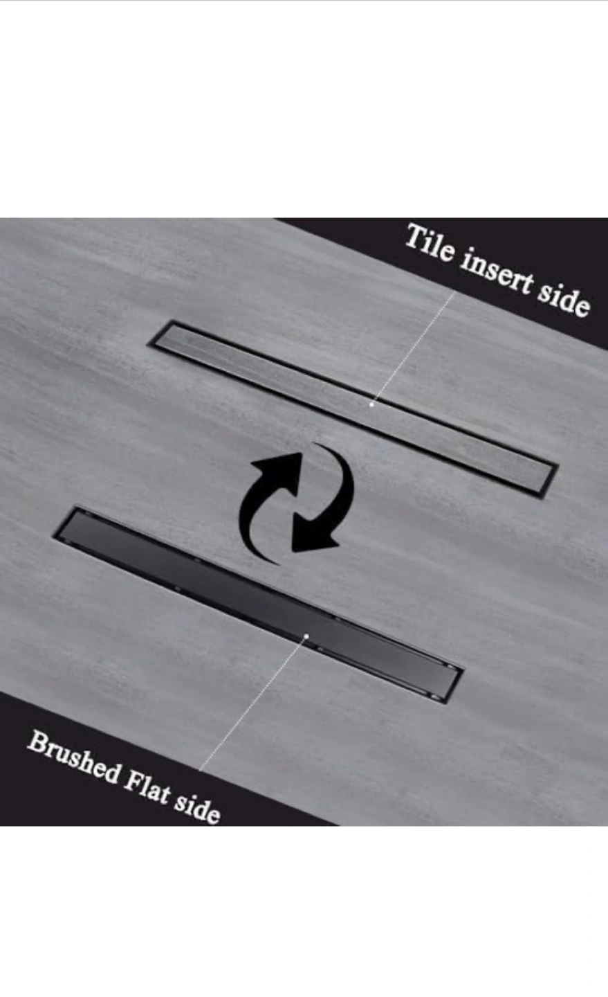 30-Inch Linear Shower Drain with Tile Insert Grate, 2-in-1 Flat Reversible Matte Black Cover, Rectangle Floor Drain Brushed 304 Stainless Steel Including Hair Strainer