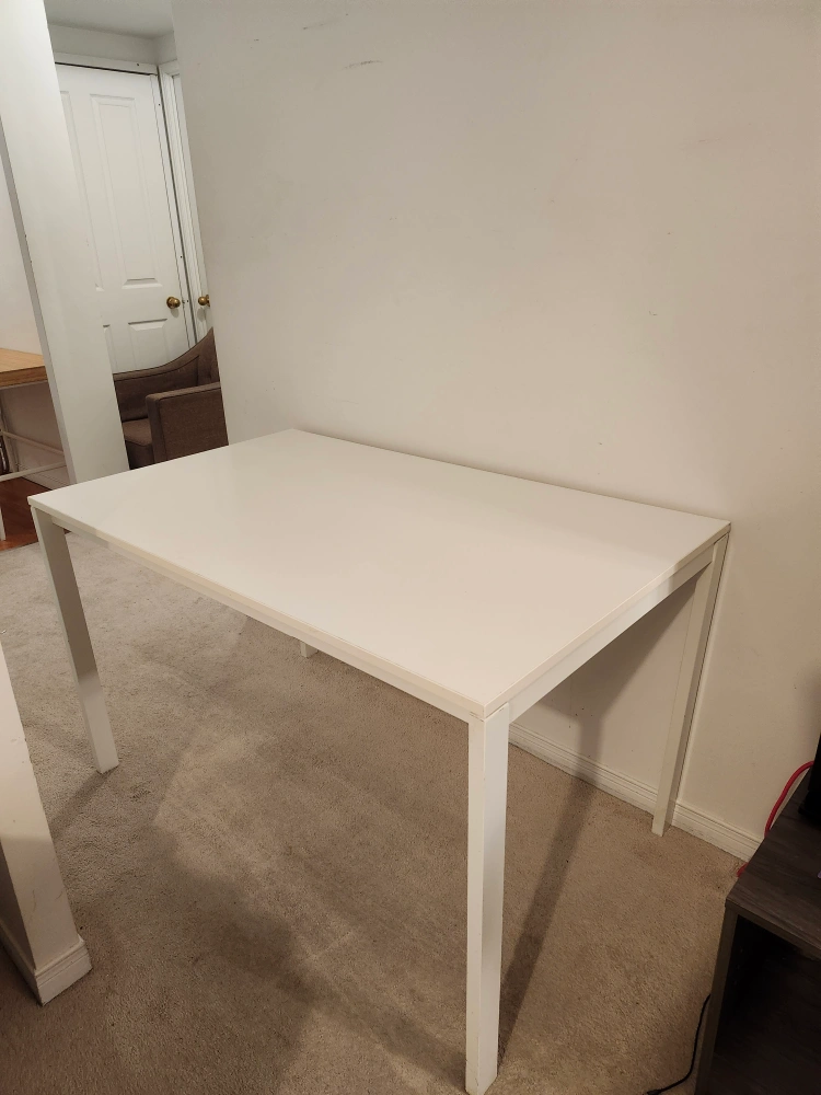 Selling a simple white table, perfect for a small dining area or as a desk. It's in great condition and ready for a new home!