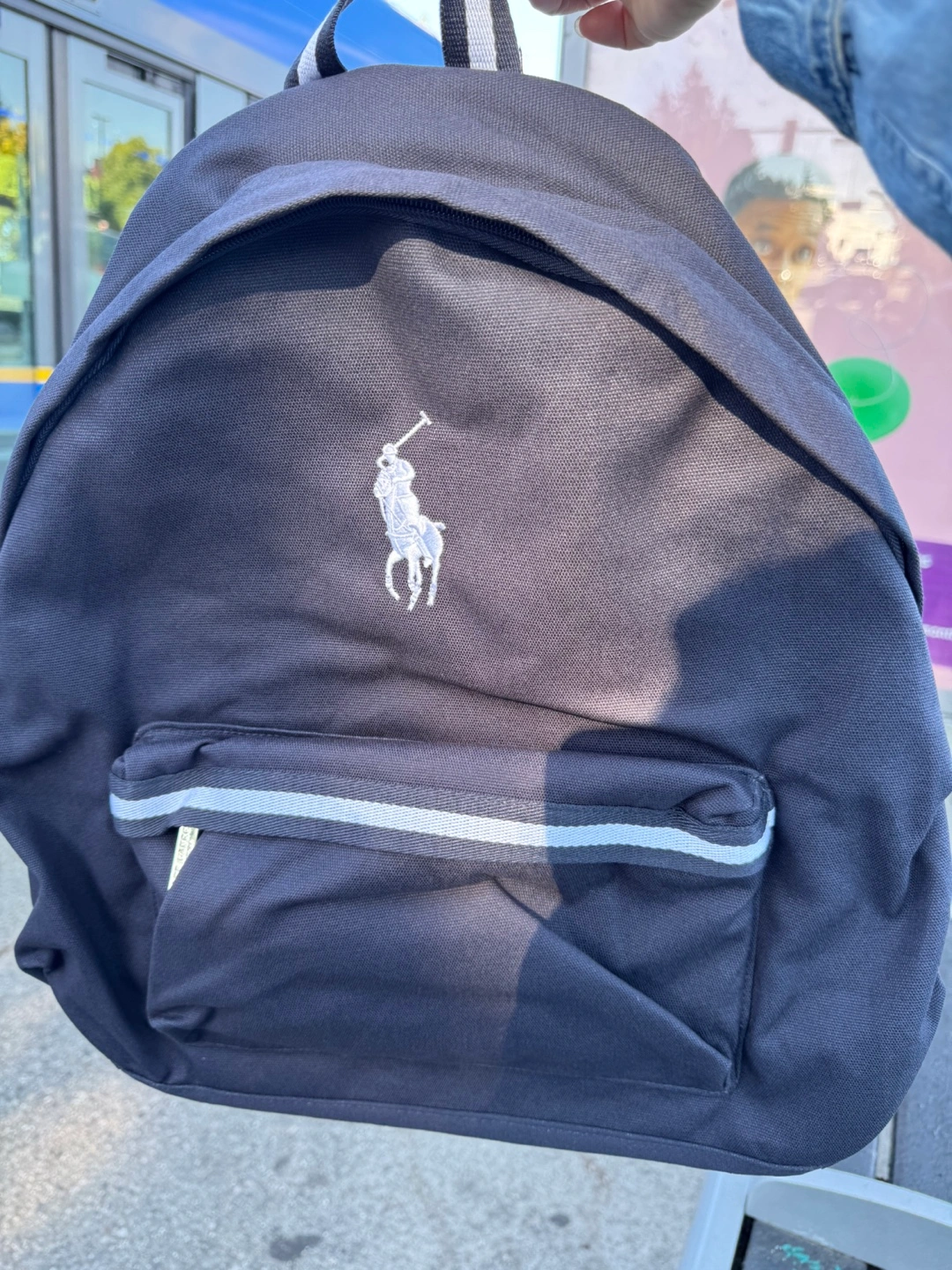 Here's a Polo Ralph Lauren backpack in great condition! It's a stylish and practical bag for everyday use. The backpack features the classic Polo logo and has a front pocket for easy access to your essentials,price is firm .