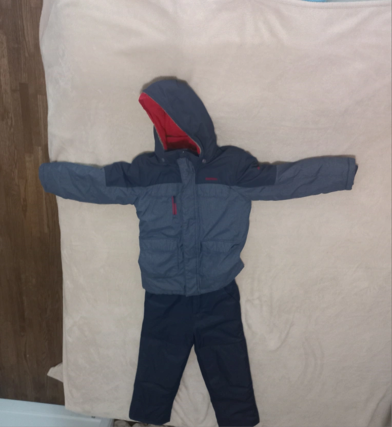 Here's a Columbia kids' snowsuit set, perfect for keeping your little one warm and dry this winter! The set includes a jacket and pants, both in great condition and ready for snowy adventures and to play in the snow.