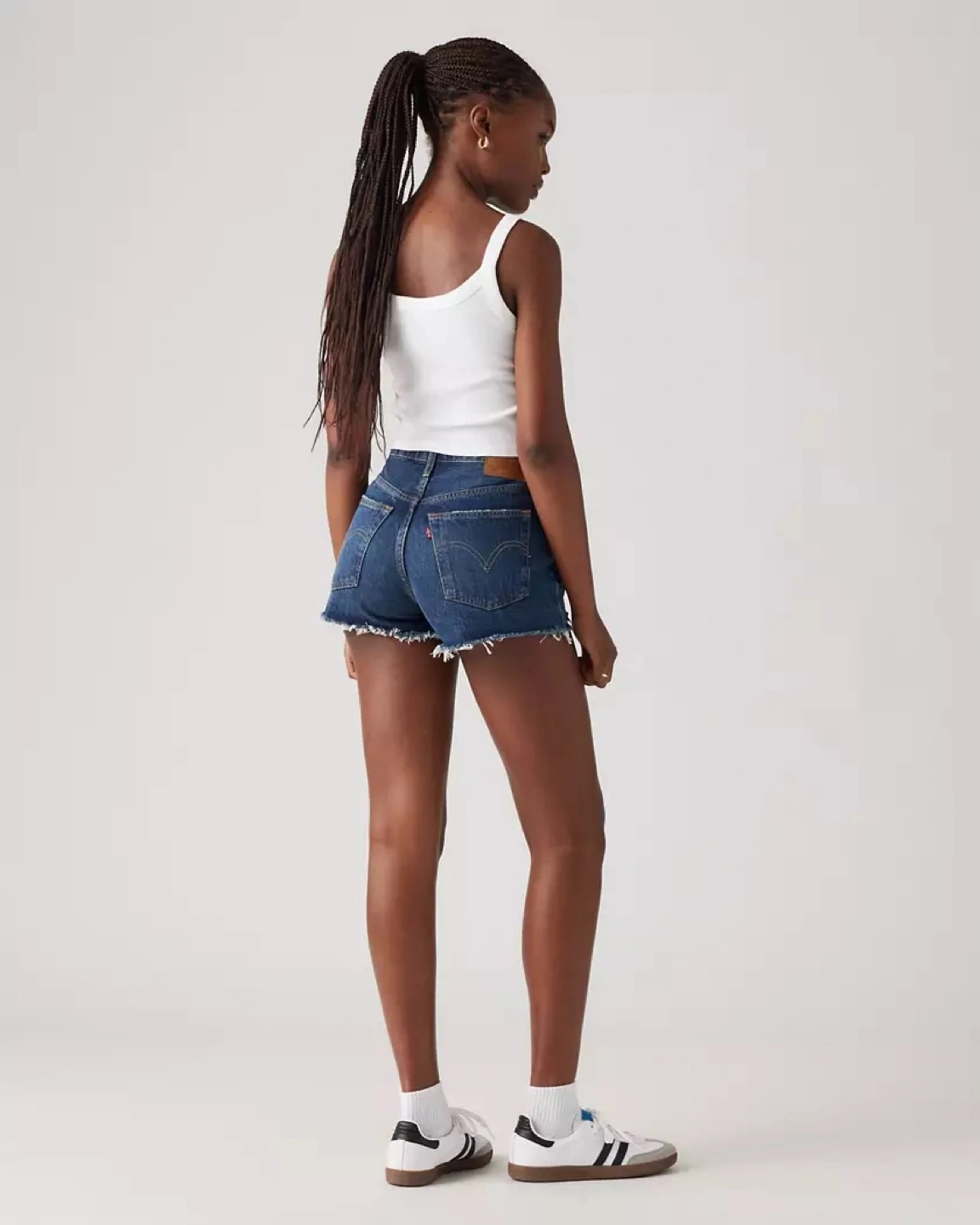 Levi's 501 denim shorts in a dark wash. These cute shorts are a size 27 and have a frayed hem. They're in great condition and ready for a new home! Retail is $88. Pick up only.