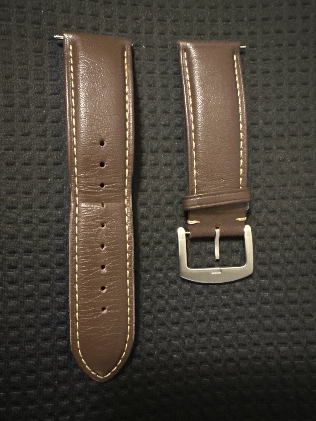 Selling a brand like new Wocci watch band! It's a 24mm brown leather strap, perfect for dressing up your favourite watch. The packaging includes a size guide to ensure a proper fit. The material is genuine leather, ensuring both comfort and durability