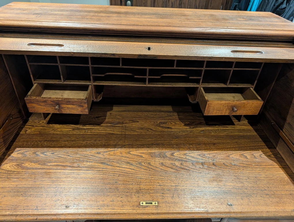 antique Roll Top Desk - Solid Wood