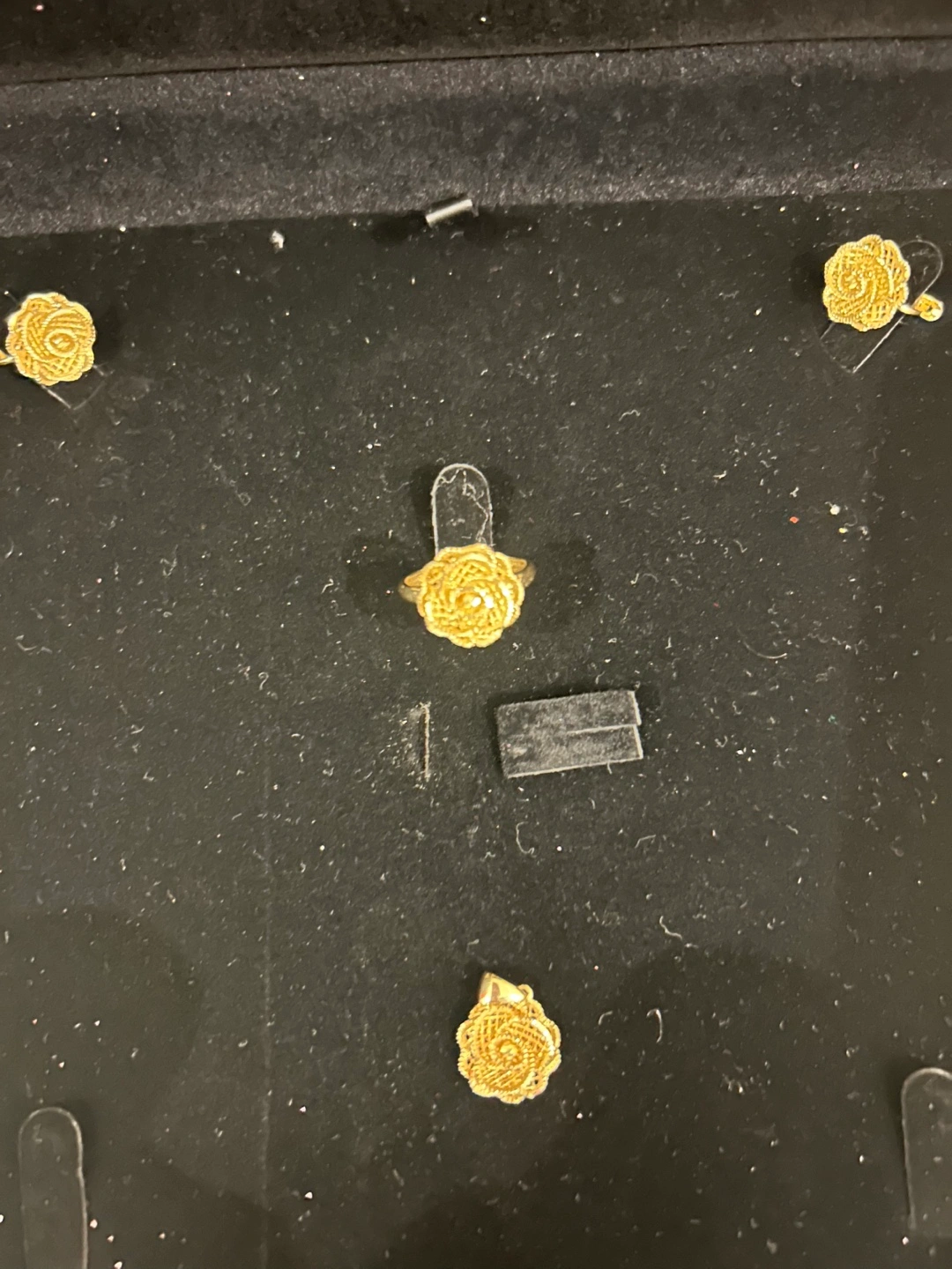 14k Turkish Gold Flower set, includes ring, earrings & pendent