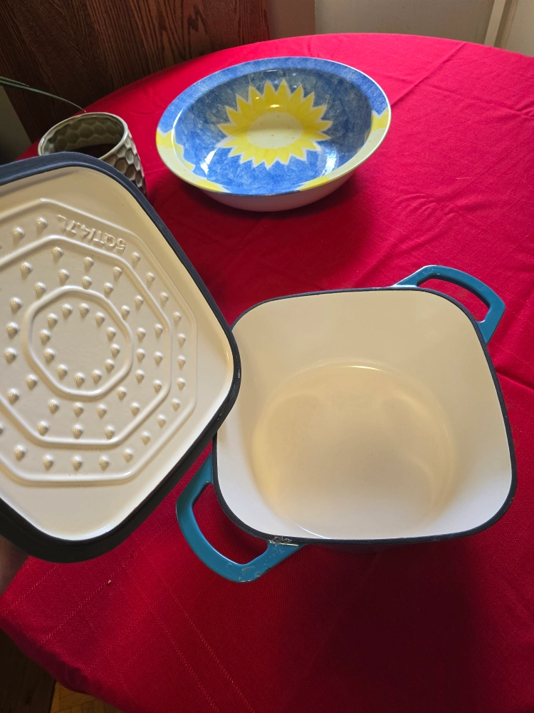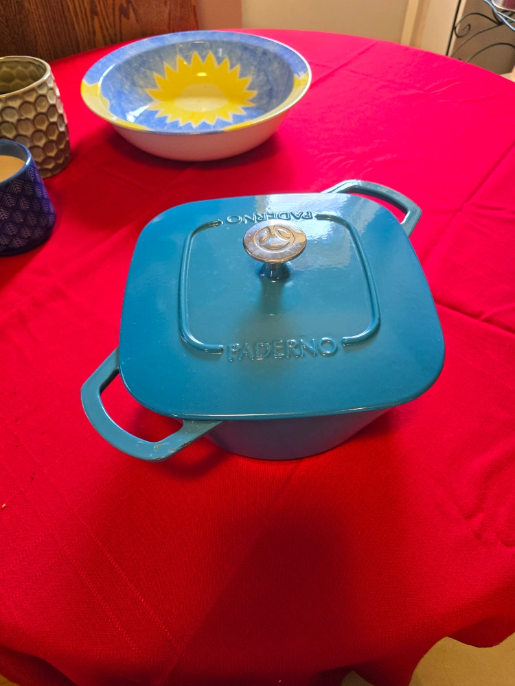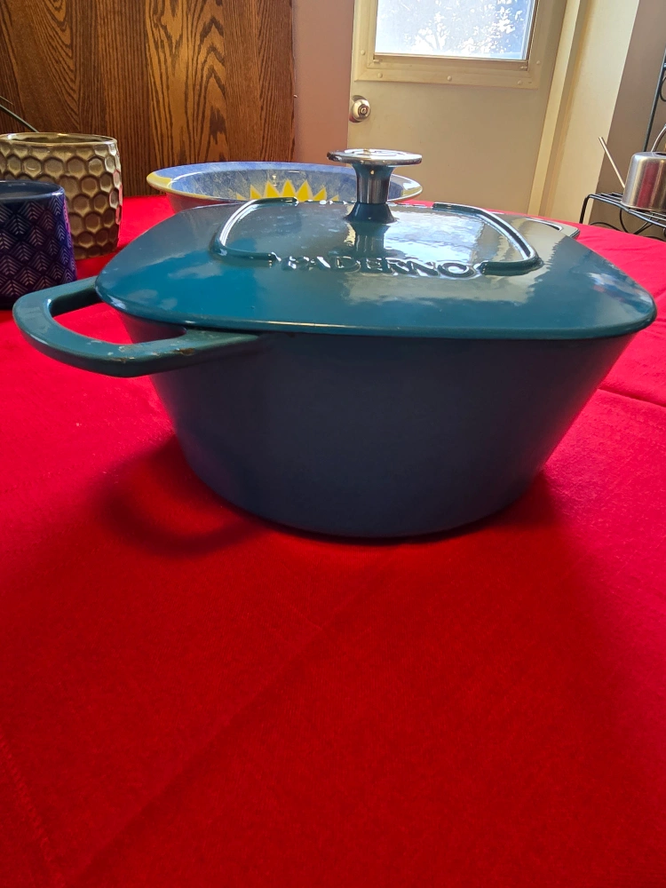 Selling a Paderno Dutch Oven in a lovely blue colour. It's in great shape and ready for all your cooking needs! Perfect for stews, roasts, and more. A great addition to any kitchen!