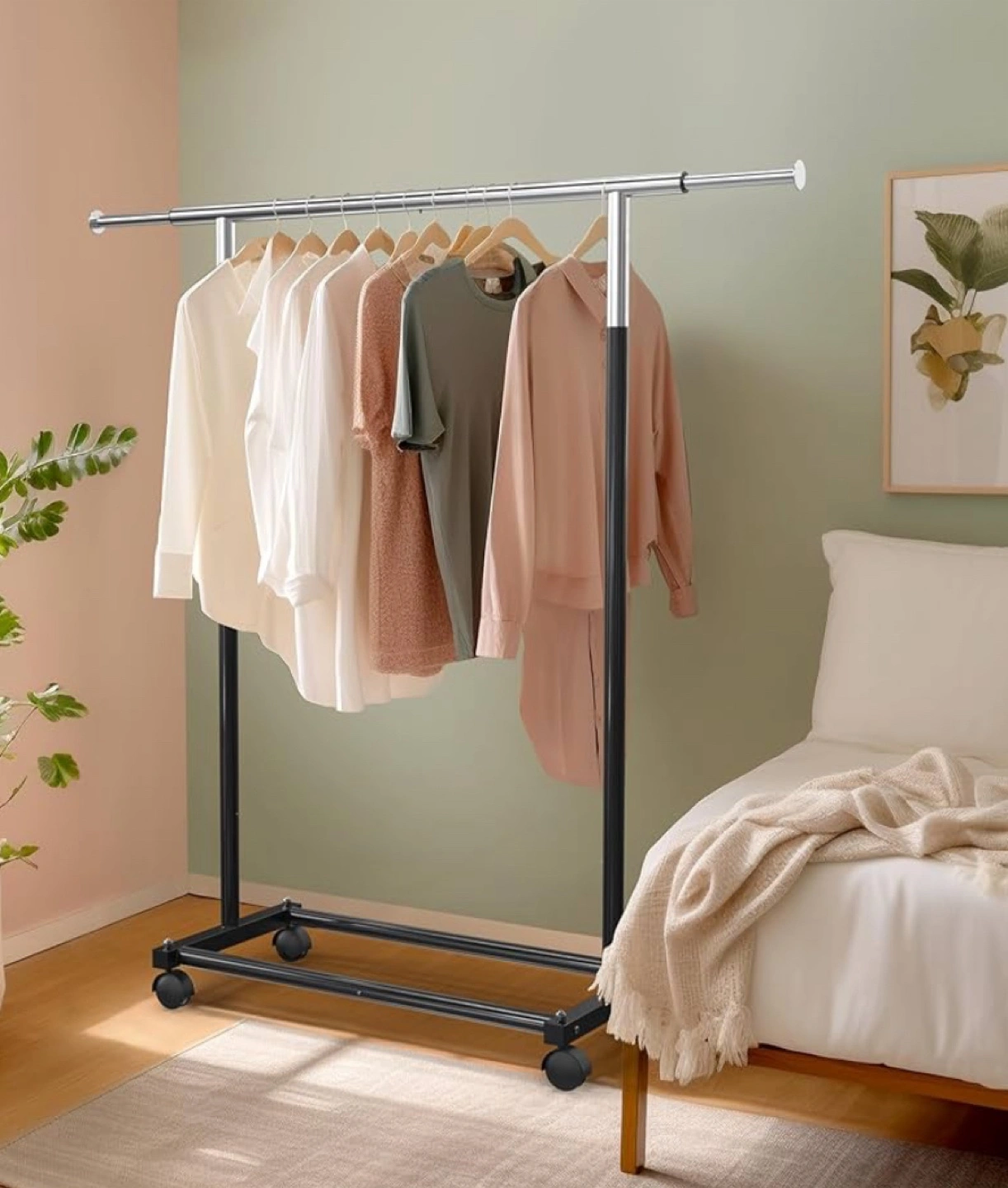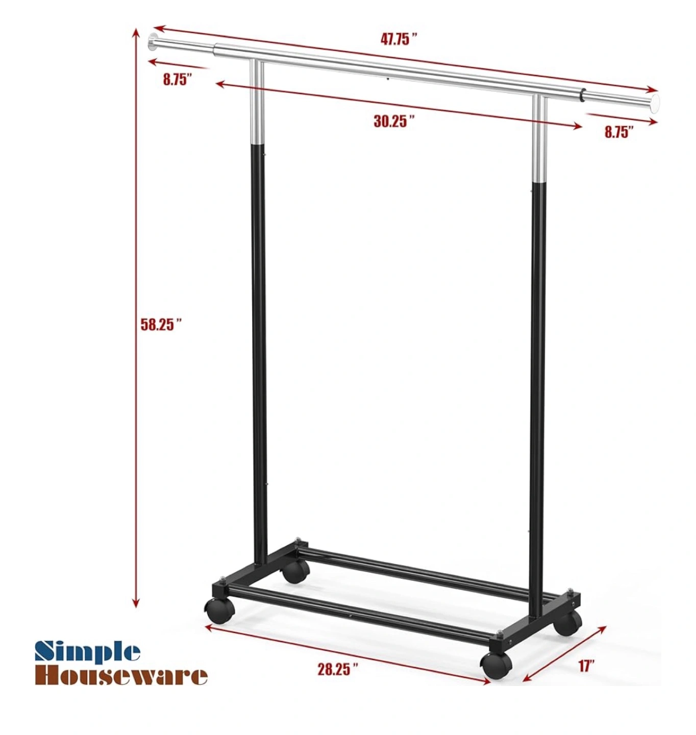 23Selling a Simple Houseware clothes rack! It's perfect for adding extra hanging space to your home. It has wheels so you can move it around easily. Dimensions are approximately 47.75" wide, 58.25" high, and 28.25" deep