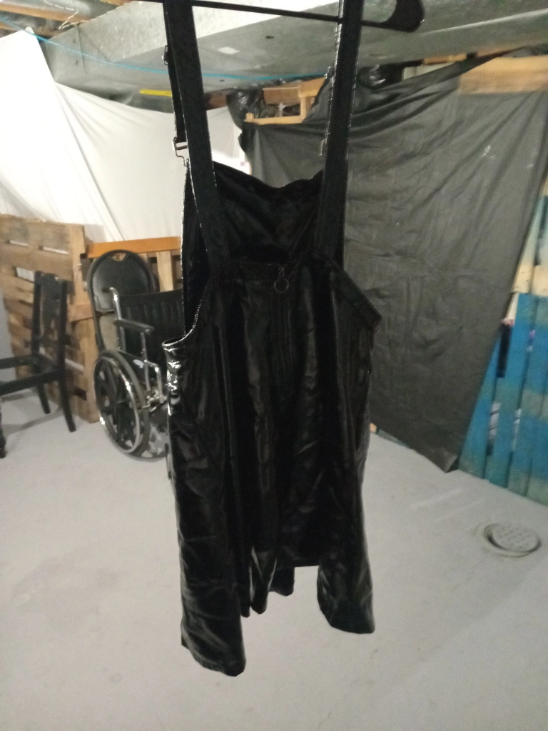 Hot Topic black faux leather overall dress in size large. Barely worn, just wasn't me. Raver/goth style.