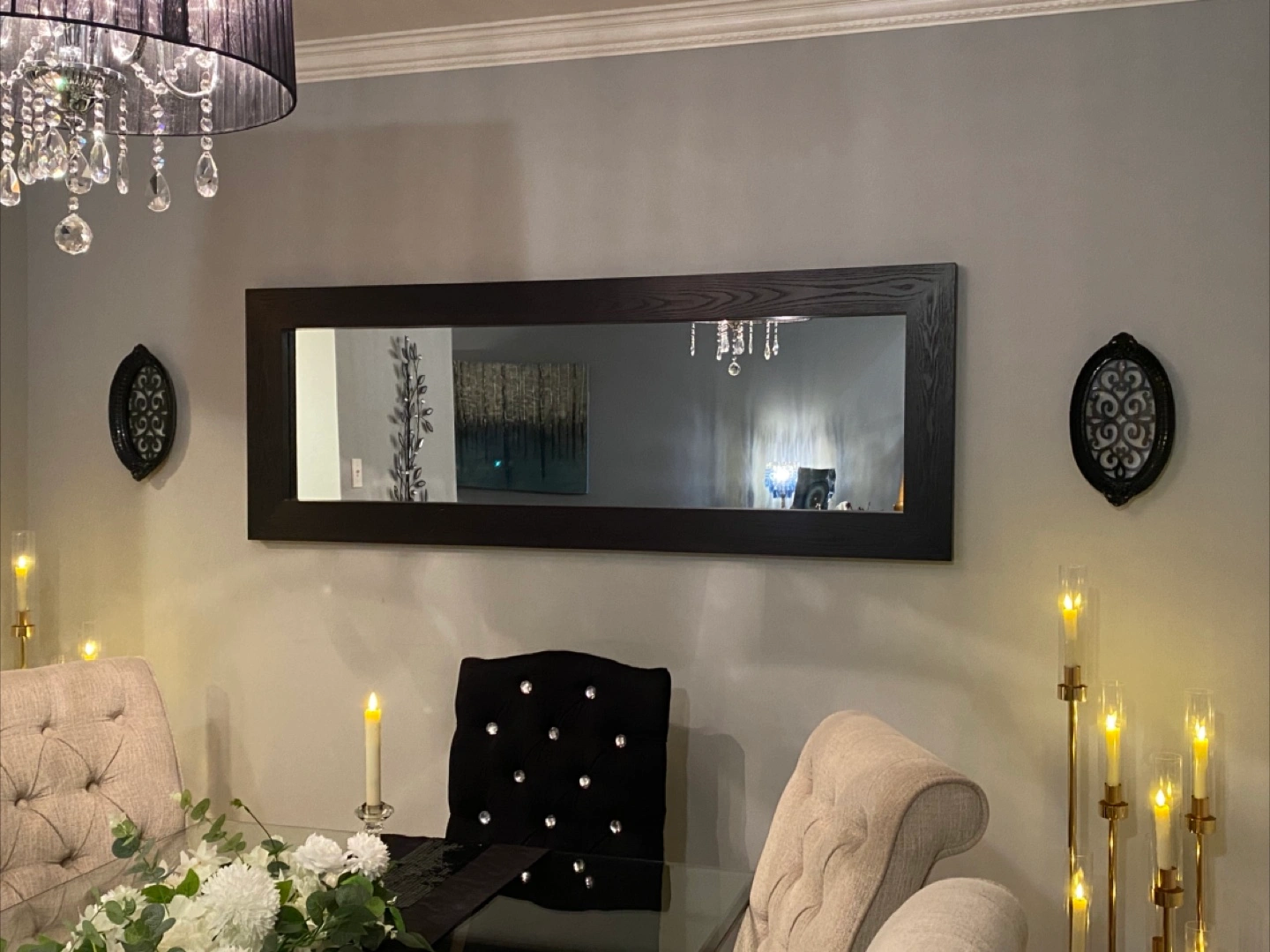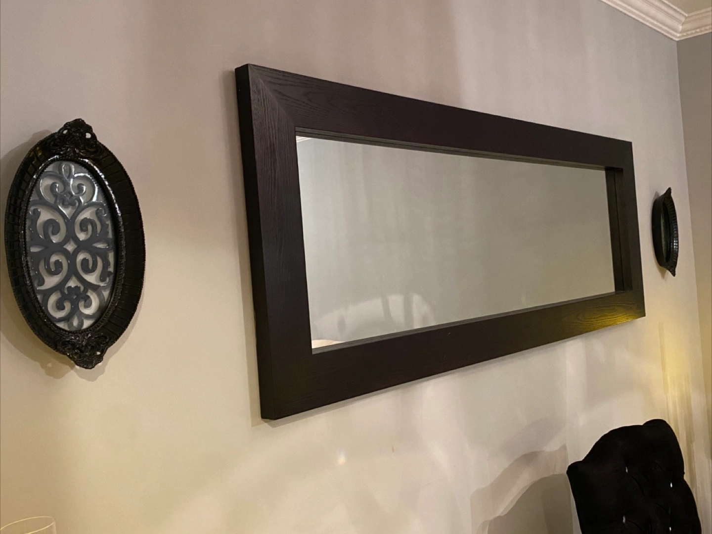 Selling a large framed wall mirror, perfect for adding a touch of elegance to any room.