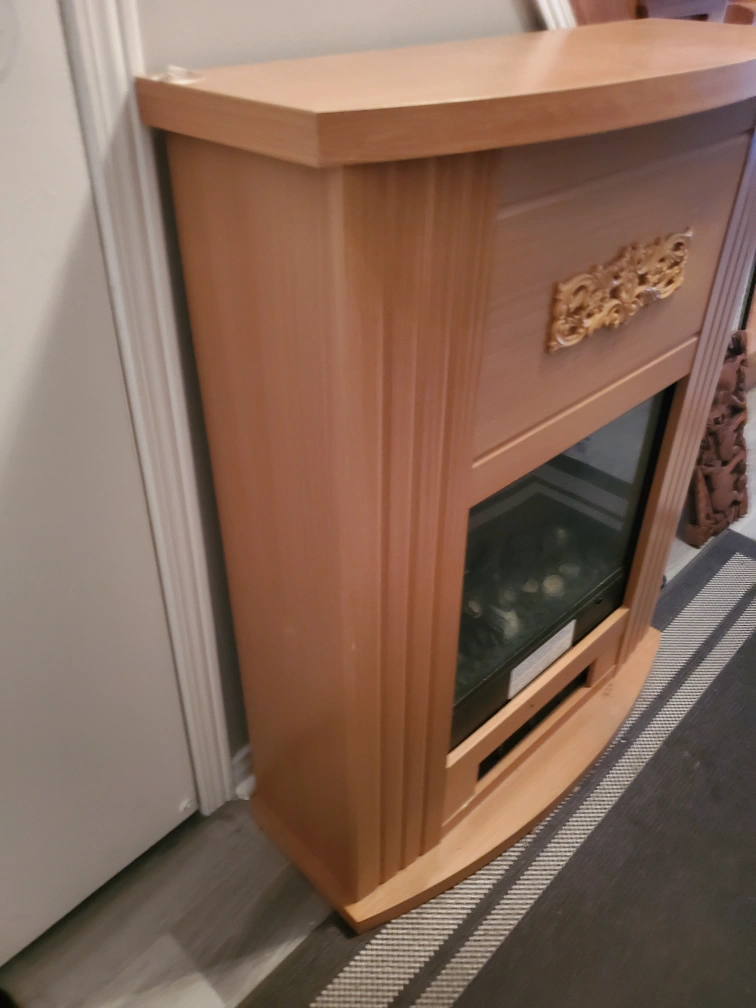 Cozy up your space with this electric fireplace heater! It features a realistic flame effect and a classic oak finish that will complement any room. Perfect for adding warmth and ambiance on chilly evenings.