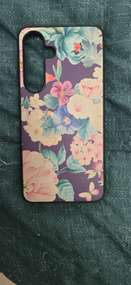 Selling a phone case with a lovely floral design! The case features a beautiful arrangement of flowers in shades of pink, purple, and blue on a dark background. It's in great condition and ready to protect your phone in style samsung galaxy s24 5G