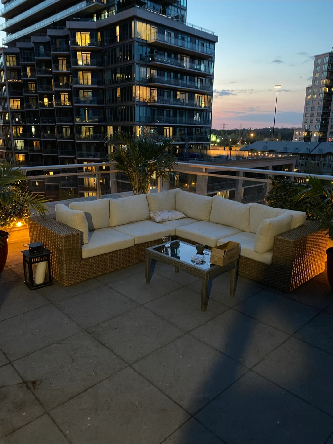 Looking to sell my outdoor wicker sectional sofa set. It's perfect for a patio or balcony! It's in good condition and ready for a new home. It's a great way to enjoy the outdoors with friends and family