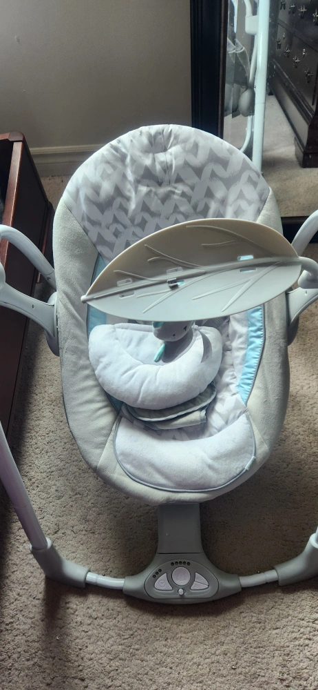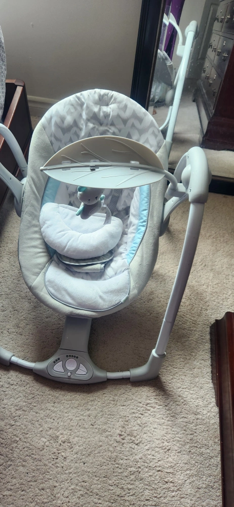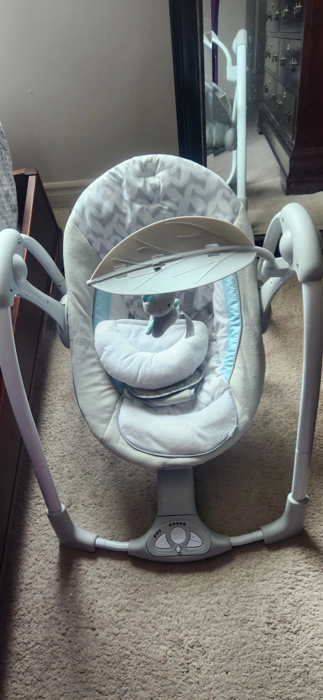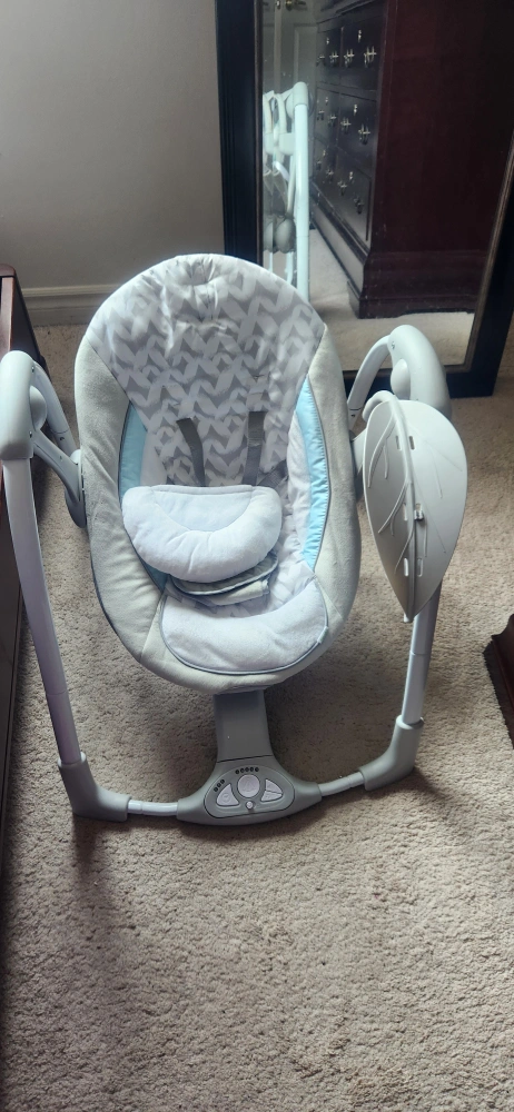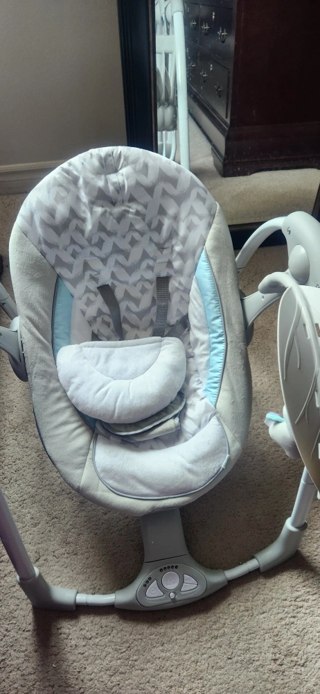 Selling a baby swing in great condition! It's grey and blue and has a comfy seat for your little one. Perfect for keeping baby entertained and relaxed.