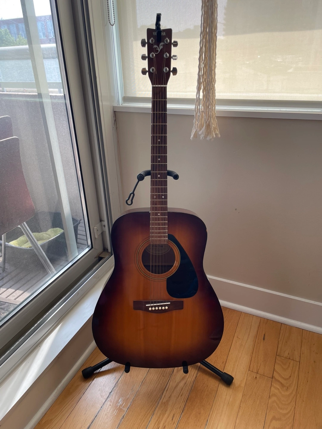Selling a Yamaha F310 TBS acoustic guitar. It's in great shape and comes with a gig bag for easy transport. This guitar is perfect for beginners or experienced players looking for a reliable instrument.