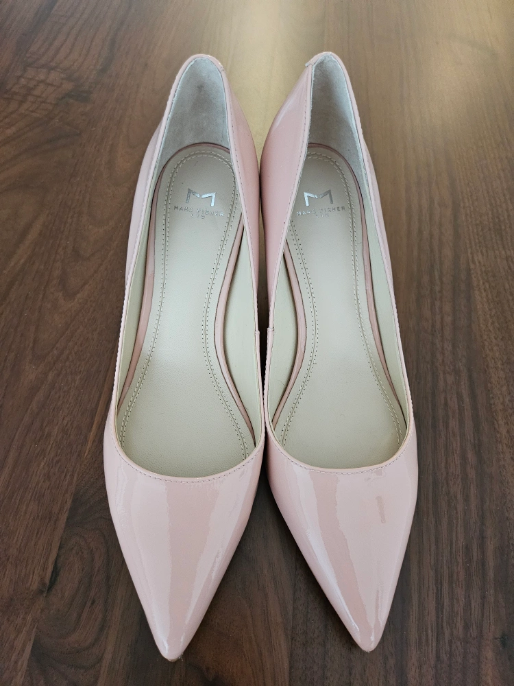Selling a pair of Marc Fisher LTD heels in a beautiful pink patent leather! They are a size 6.5 medium and have a classic, elegant look. Never worn, just tried on. NWT.