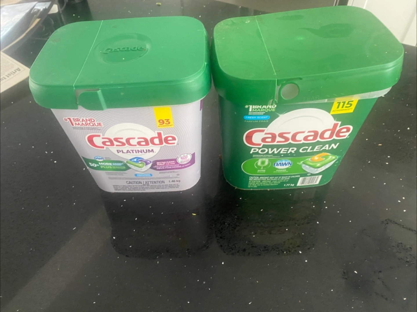 Selling two containers of Cascade dishwasher pods. One is Platinum and the other is Power Clean. Both containers have been opened and used, but there are still plenty of pods left!