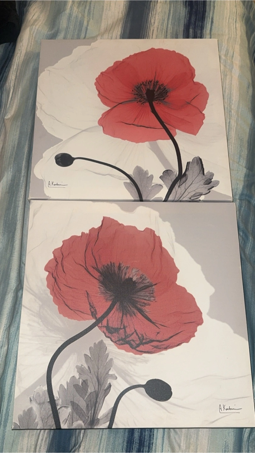 98Selling a set of two lovely floral wall art pieces! They feature a beautiful red poppy design on a neutral background. Would look great in any room!