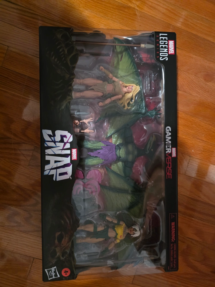 Selling a Marvel Legends Gamerverse Snap action figure set! It's still in its original packaging. The box also includes a warning that it's not suitable for children under 3 years due to small parts. Rouge savage land
