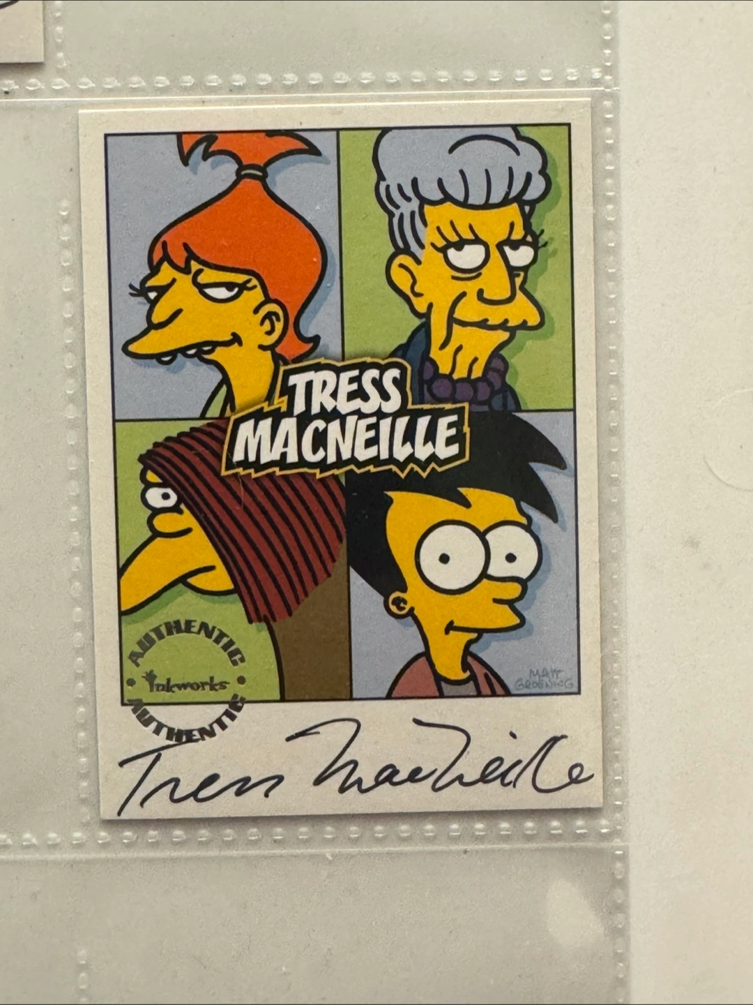Selling a Tress MacNeille trading card from The Simpsons. This card features Agnes Skinner, Nana Van Houten, Millicent, Pepi, Dolph, Adil Hoxha, Brandine Delroy, and many others!